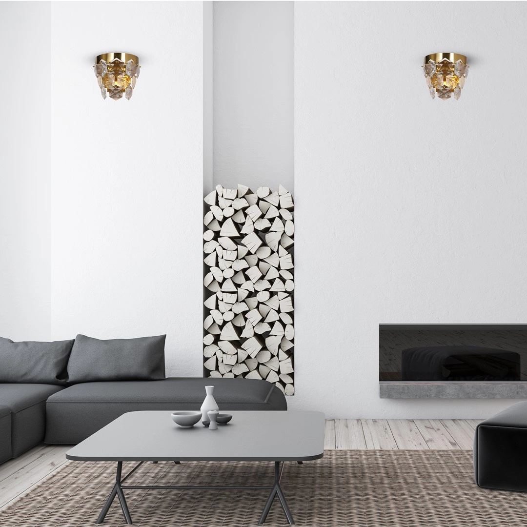 Wyrazisty design kinkiet GRACE GOLD sprawia, że pięknie wypełni on każde wnętrze, nadając mu niecodzienny charakter. Lampa ta posiada dwa punkty świetlne. Wykonano ją z wysokiej jakości tworzyw: metalu i kryształu, które wspaniale się uzupełniają, tworząc przyjemną dla oka grę światłem. Model ten doskonale sprawdzi się w przestronnych przestrzeniach loftowych lub utrzymanych w stylu glamour. Będzie dobrze wyglądać w towarzystwie bieli, czerni, szarości, a także bardziej wyrazistych kolorów, jak czerwień lub zieleń.
