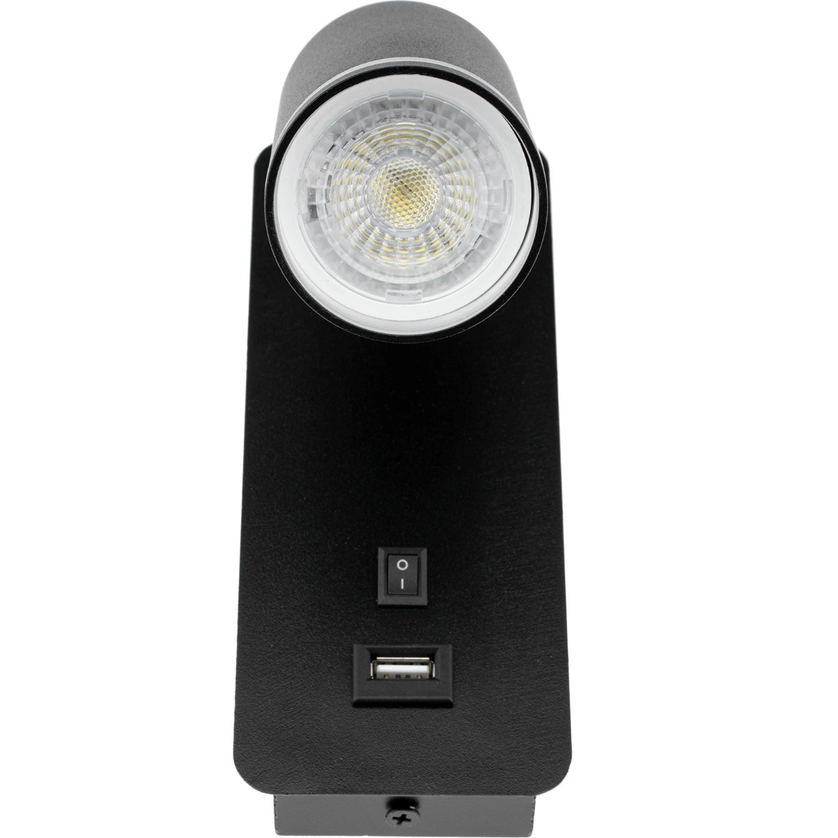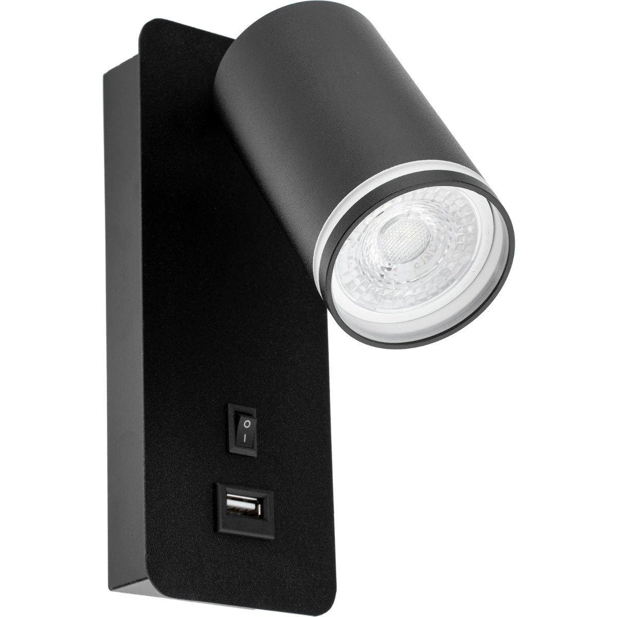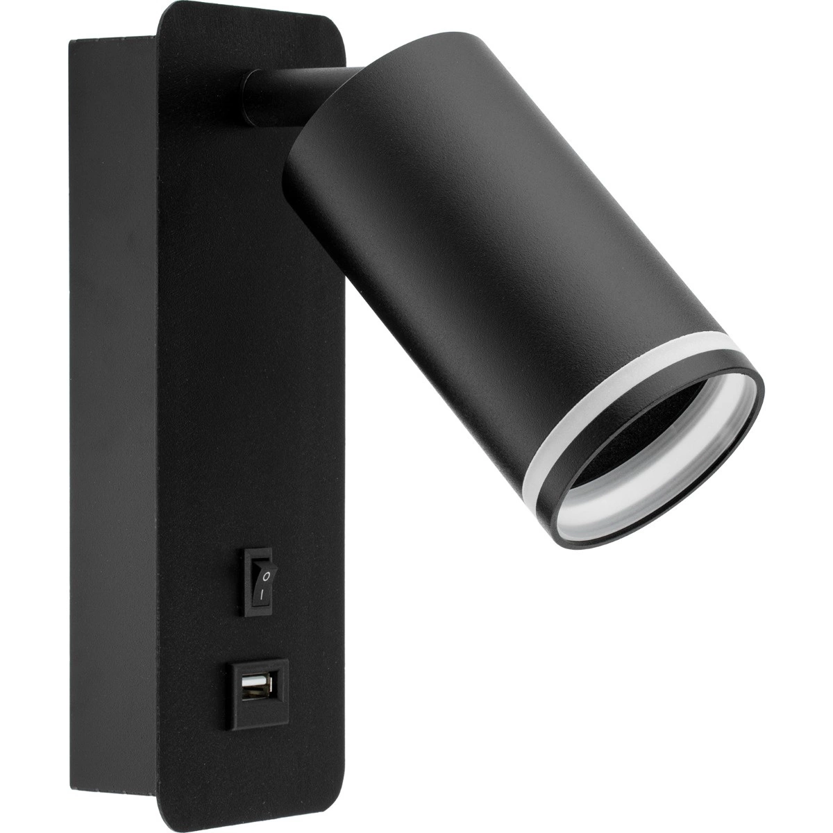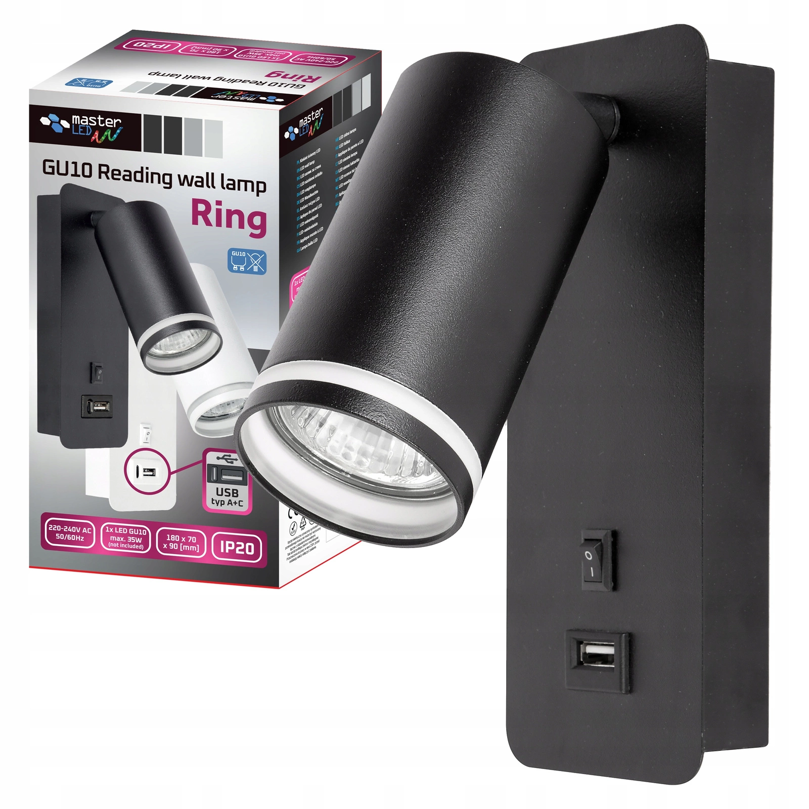 Lampa ścienna Kinkiet GU10 RING z USB i włącznikiem czarny
