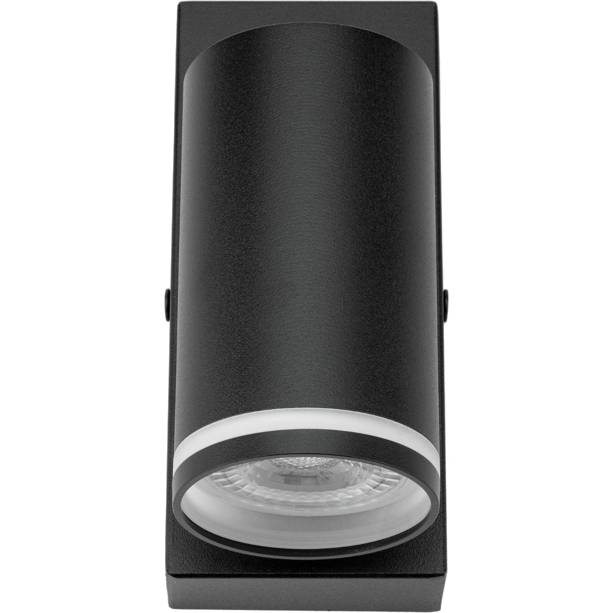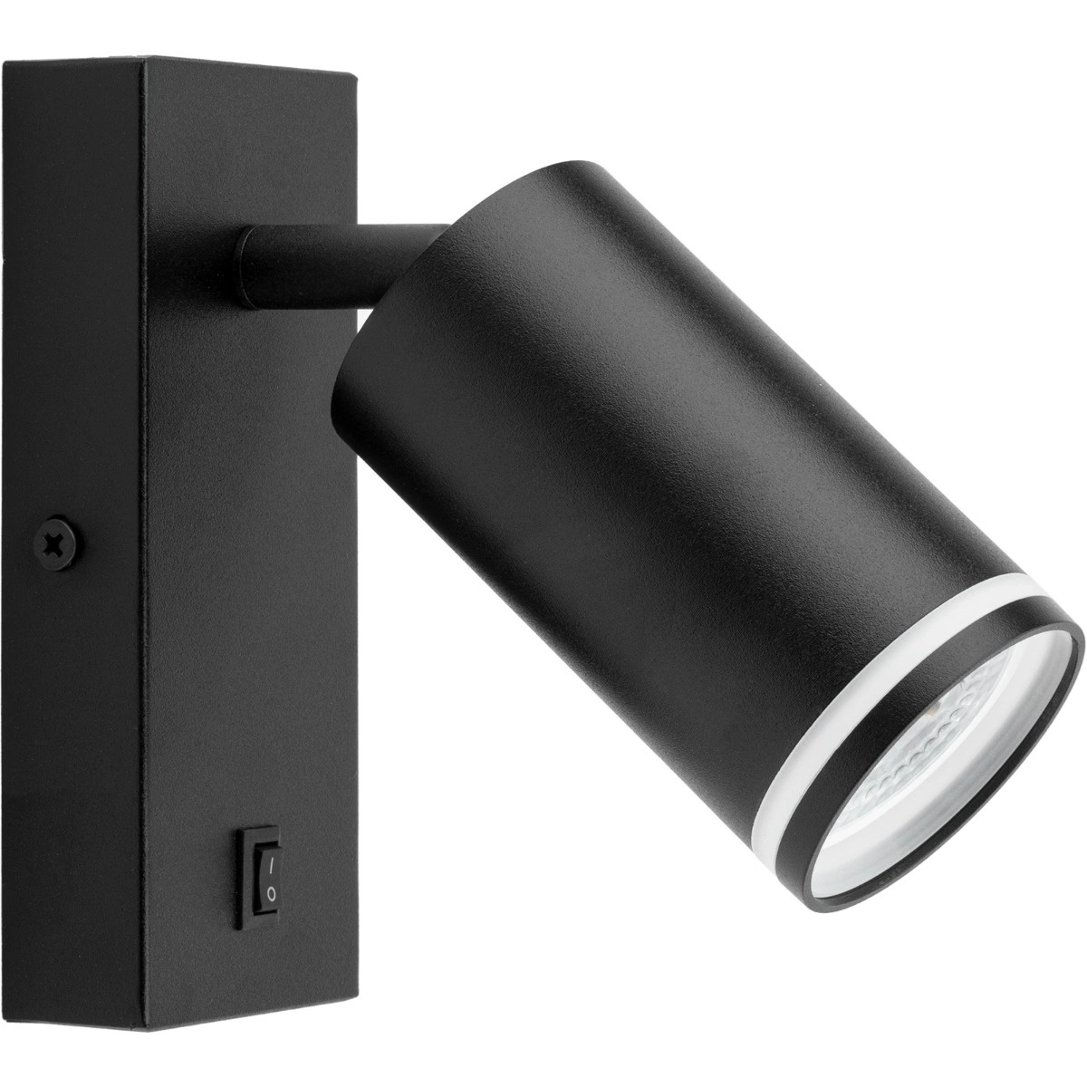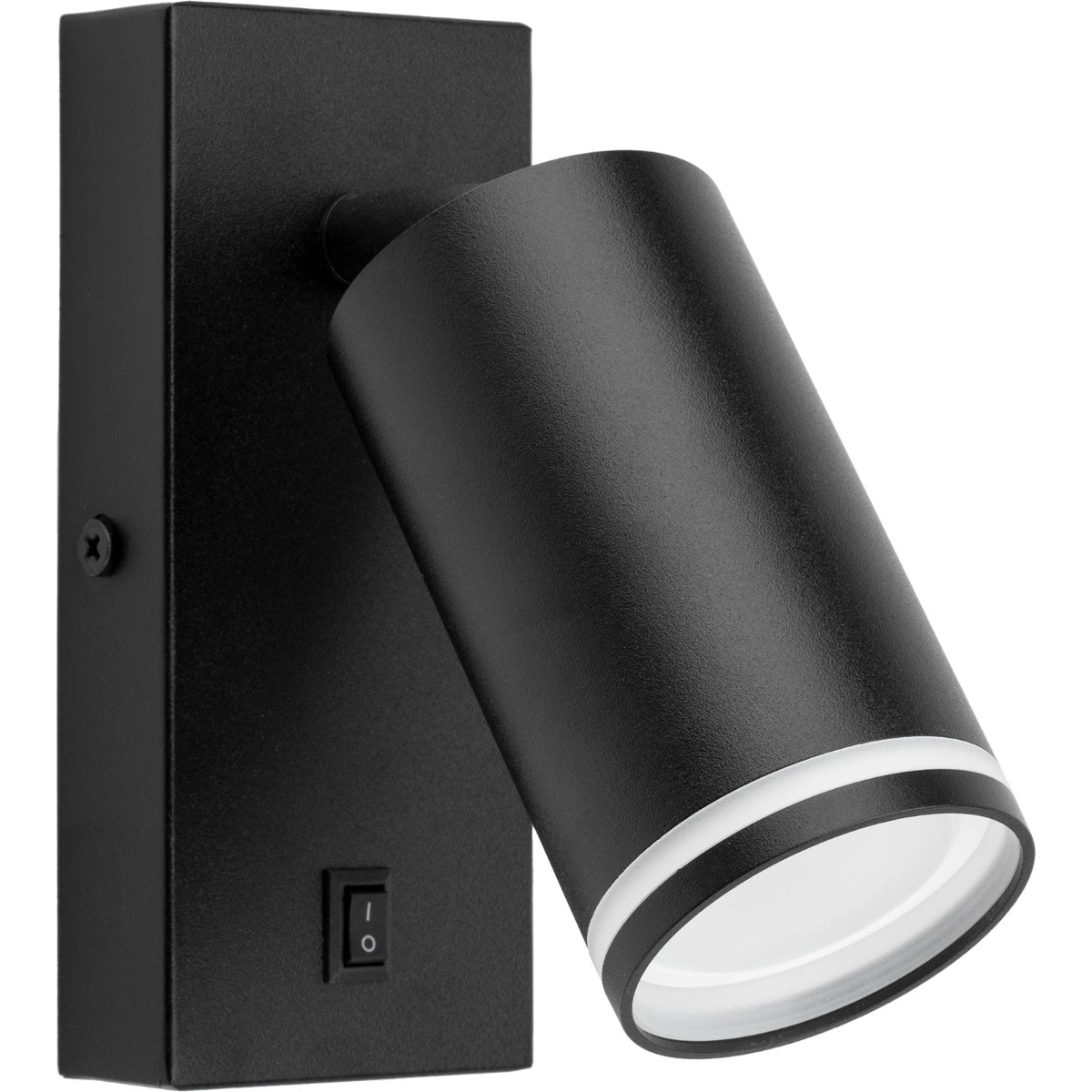Kinkiet ścienny koloru czarnego na wymienne źródło światła o trzonku GU10. Lampa wykonana z wysokiej stali, aluminium i akrylu, posiada dekoracyjny pierścień. Lampa posiada włącznik do czytania umożliwiający łatwe włączanie światła.