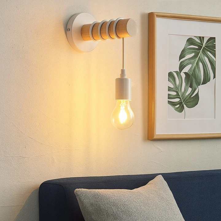 - Stylowy design: Lampa łączy elegancję i nowoczesność dzięki kolorystyce białej i brązowej oraz połączeniu stali z drewnem.