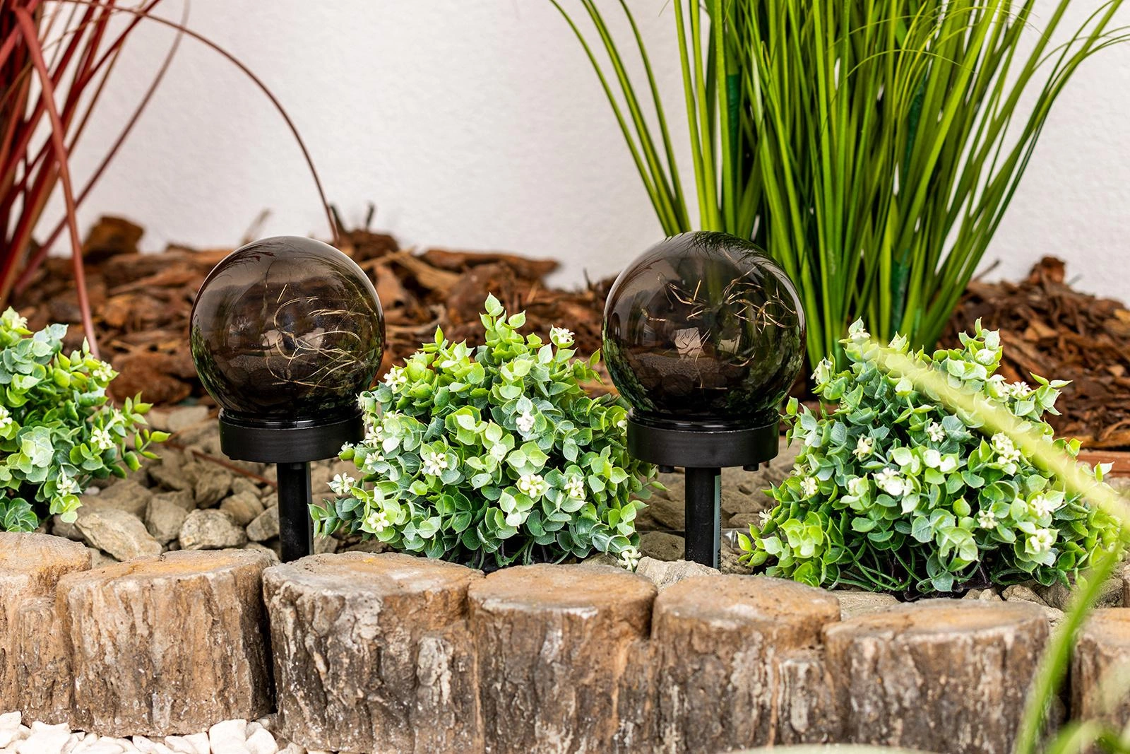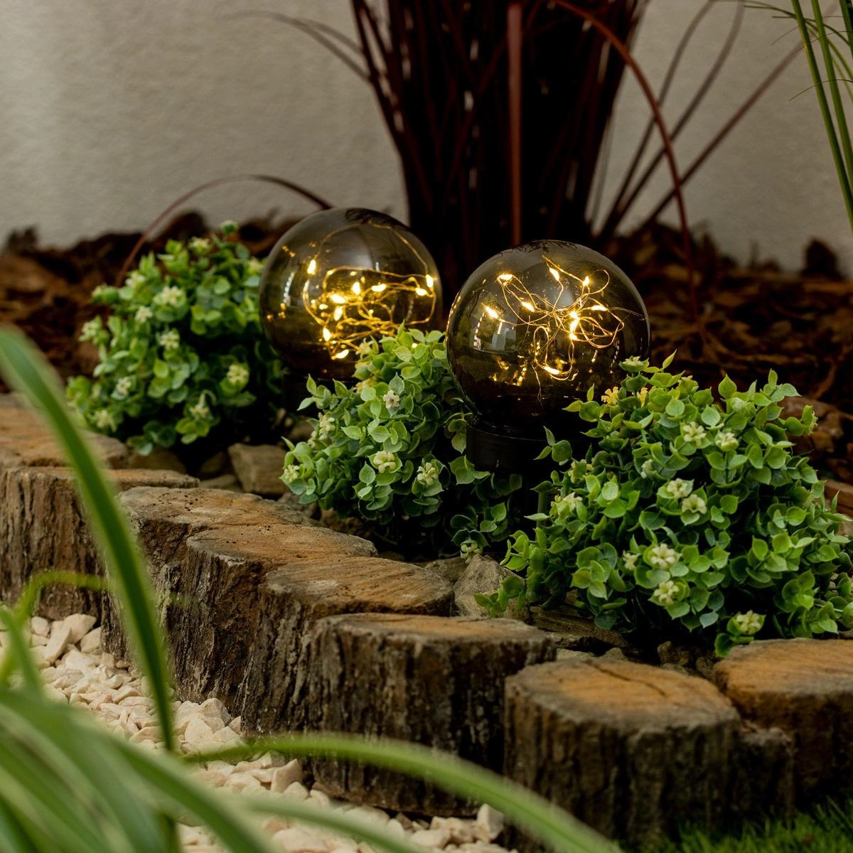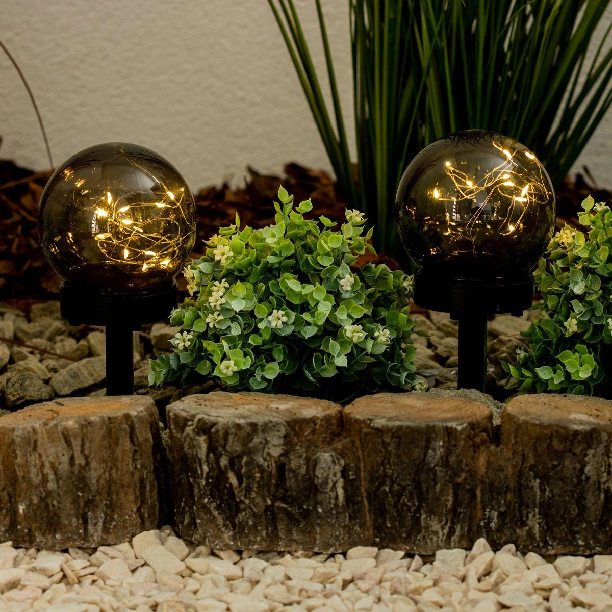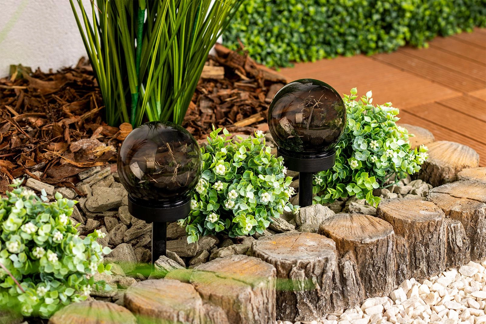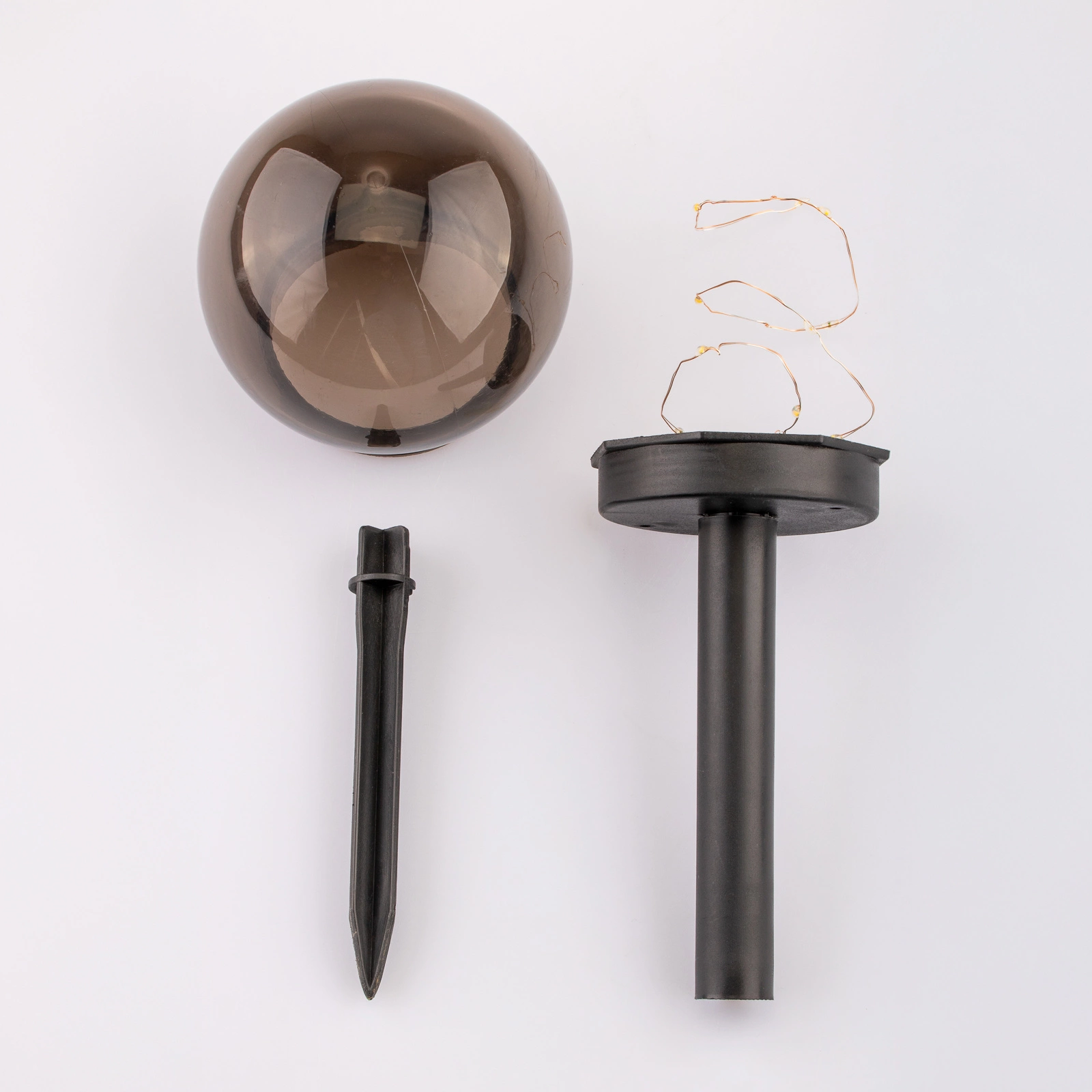 Dekoracyjna lampka solarna GLORIS znanej renomowanej w branży oświetleniowej marki LUMILED doda elegancji i nastrojowego oświetlenia Twojemu ogrodowi. Jej smukły, czarny szpikulec wbijany w ziemię stanowi stabilną podstawę, a jednocześnie dodaje lampie nowoczesnego i stylowego charakteru. Górna konstrukcja to okrągły, przydymiony klosz, który subtelnie ukazuje diody LED. Emitują one ciepłe, złociste światło o temperaturze barwowej 3000K, tworząc efekt migoczących gwiazd zamkniętych w szklanej kuli.