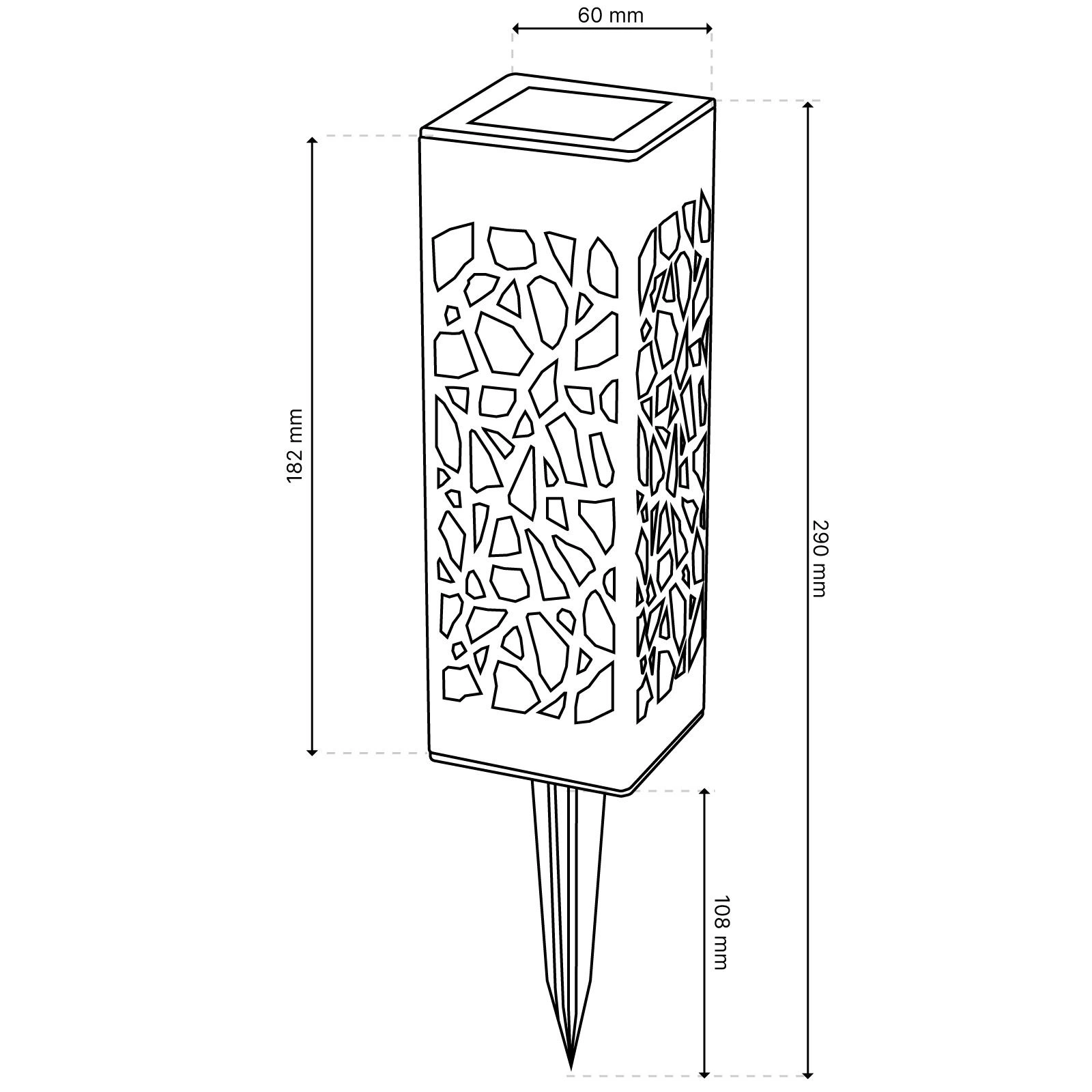 Lampa solarna AZURE znanej renomowanej w branży oświetleniowej marki LUMILED o unikalnym designie, łączy nowoczesną estetykę z funkcjonalnością. Dzięki dekoracyjnemu wyciętemu wzorowi, lampka o ażurowym wykończeniu, efektownie rozprasza światło, tworząc wyjątkową atmosferę i nadając otoczeniu unikatowy charakter. Emituje ciepłe, przyjemne światło o temperaturze barwowej 3000K, które doskonale współgra z otoczeniem. Idealnie sprawdzi się zarówno jako dekoracyjne oświetlenie, jak i praktyczne podkreślenie ścieżek czy roślinnych aranżacji.