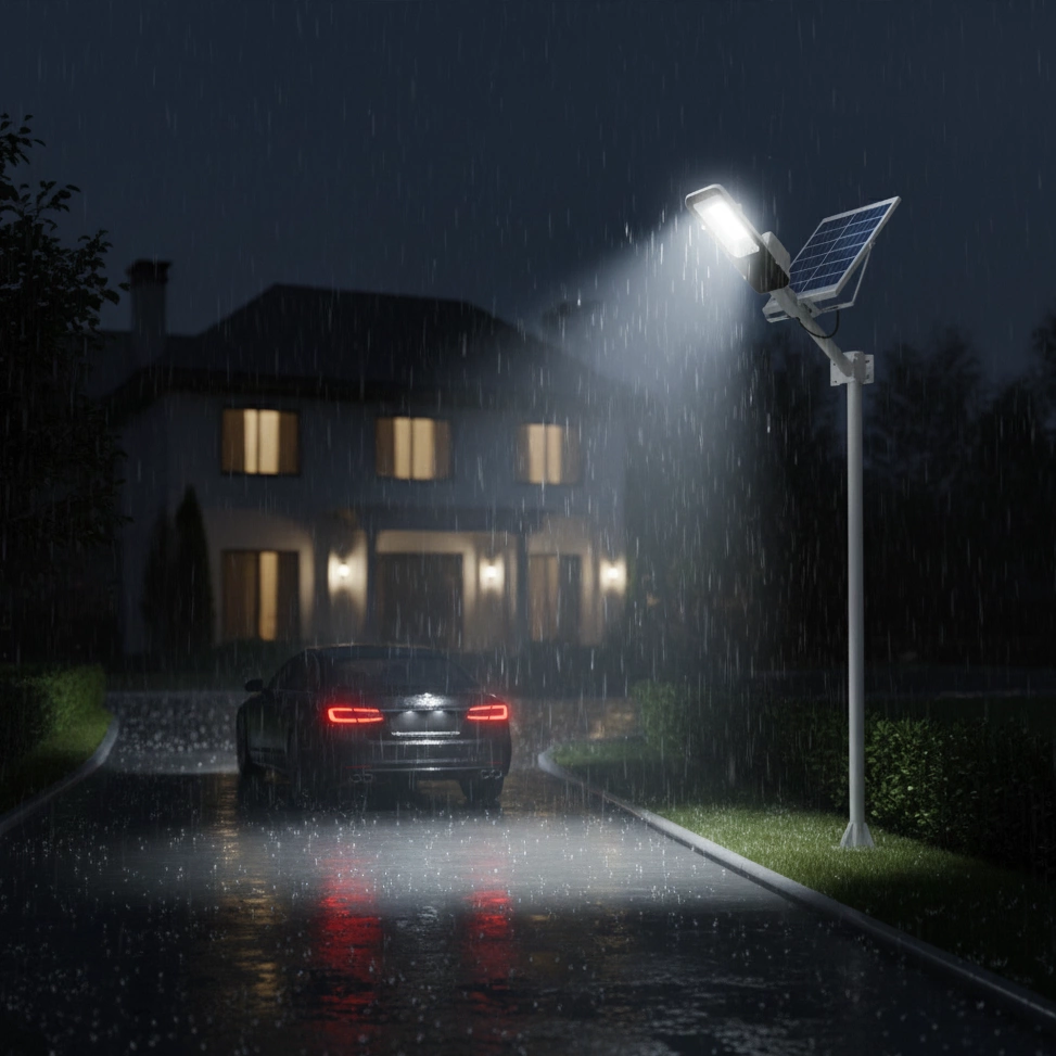 Nie martw się o pogodę – ta lampa działa zawsze. Dzięki wysokiej klasie szczelności IP66, lampa solarna jest w pełni odporna na intensywny deszcz, śnieg i wilgoć. Bez względu na warunki, zachowuje pełną wydajność i bezpieczeństwo, sprawdzając się idealnie na zewnątrz przez cały rok.