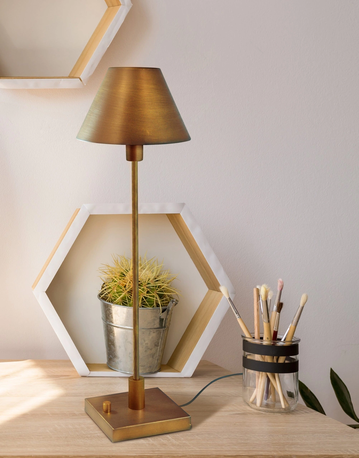 Lampa STOŁOWA GRENA uznanej na rynku oświetlenia marki Polux cechuje się pięknym i nieprzeciętnym wyglądem który zmieni nasze wnętrze, dodając mu charakteru i ciekawego wyglądu. Wykonana z najlepszej jakości metalu Lampa biurkowa jest wykończona kolorem złotym o wyglądziestarego mosiądzu przez co prezentuje się znakomicie. Lampa wyposażona jest w gniazdo z gwintem E14 przystosowanym do pracy z oszczędnymi żarówkami LED o maksymalnej mocy 12W. Decydując się na zakup lampy stołowej firmy Polux otrzymujemy produkt o najlepszej jakości i trwałości który zadowoli każdego, nawet najbardziej wymagającego klienta.