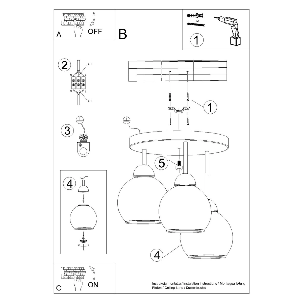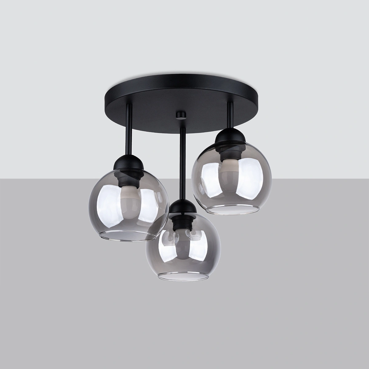 Lampa Sufitowa Plafon 3x E27 Żyrandol Kulista Czarna Nowoczesna Alino Sollux
