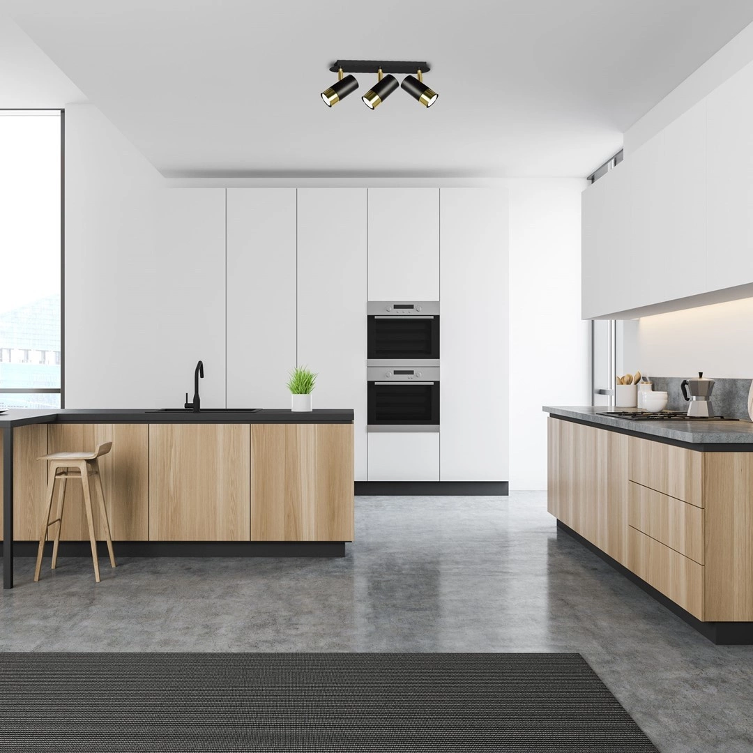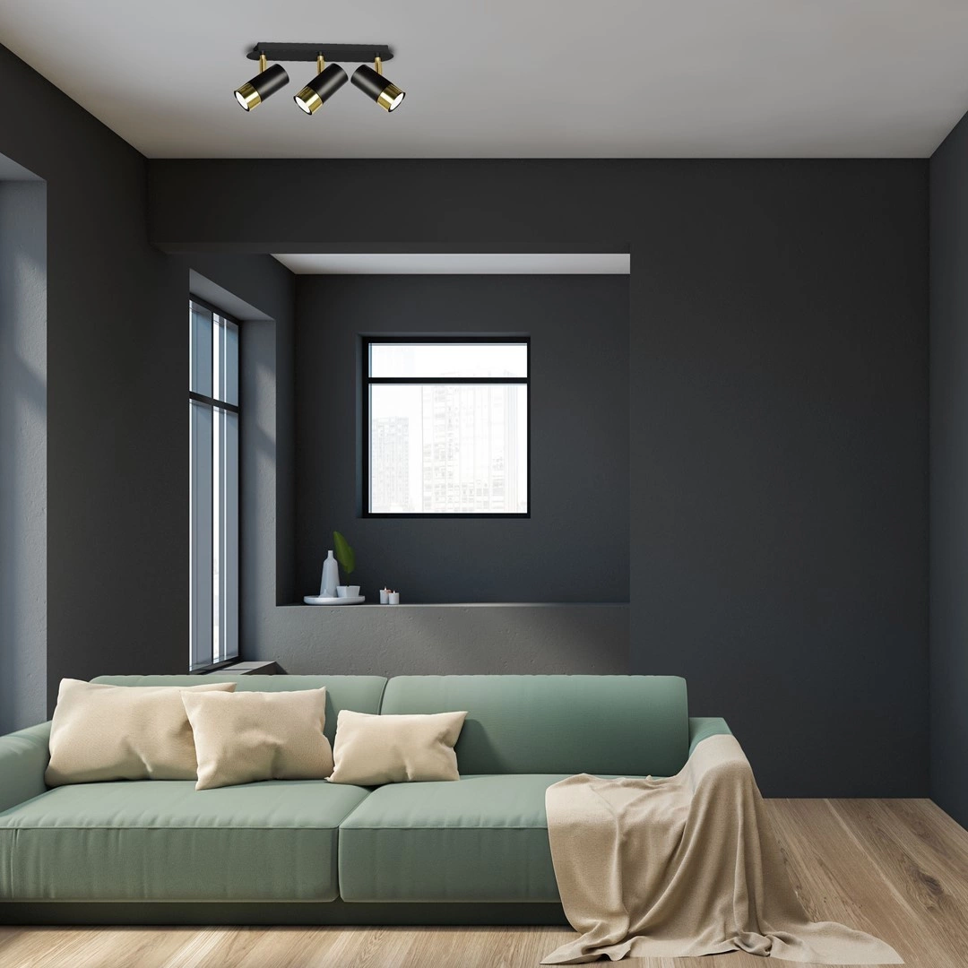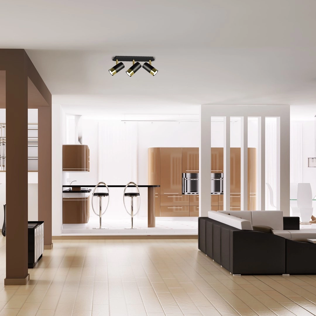 • Potrójna lampa sufitowa w kolorze czarnym ze złotymi dodatkami MLP6238