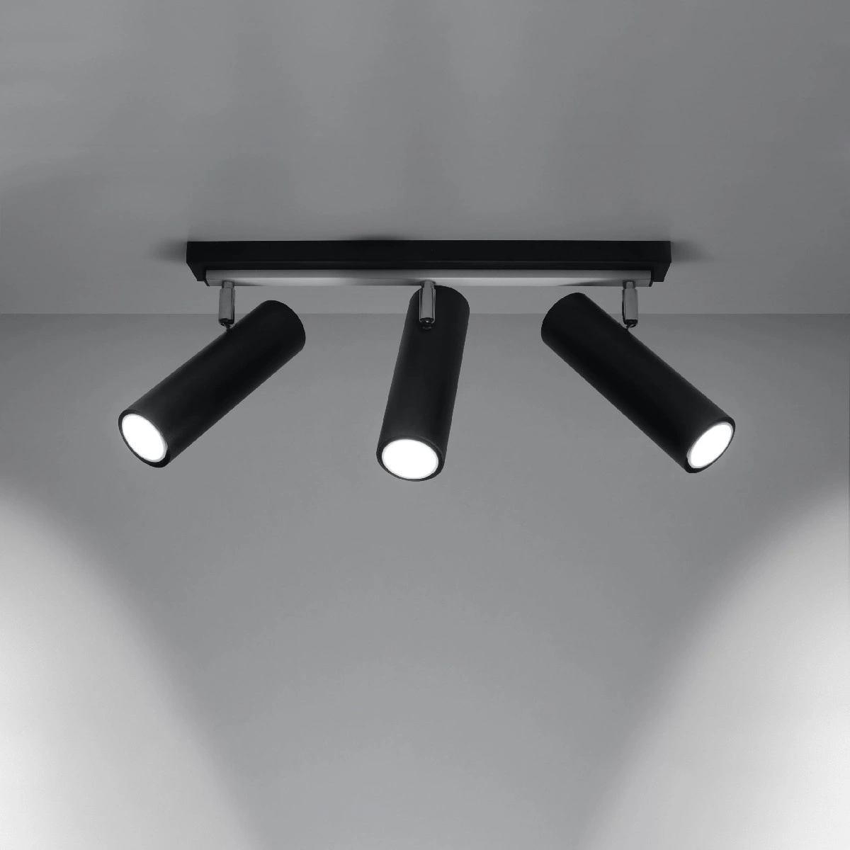 Lampa Sufitowa Oprawa Natynkowa SPOT TUBA Reflektor 3x GU10 Ruchoma Tubularna Czarna Nowoczesna Direzione Sollux