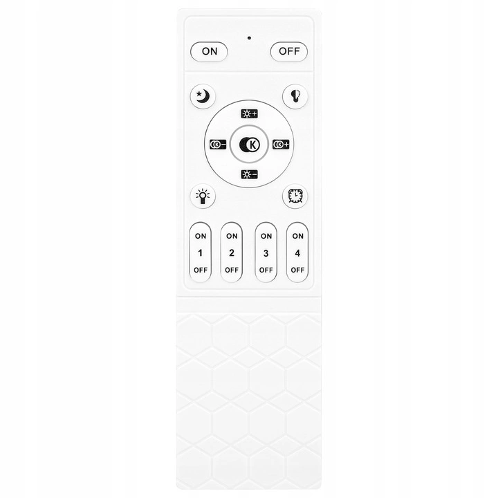 Produkt można ściemniać w zakresie od 1% - 100% mocy a barwę ŚWIATŁA zmienimy w zakresie 3000K - 6500K. Przy ustawieniu białego ciepłego/zimnego maksymalna moc produktu wynosi 65W a w przypadku barwy neutralnej 130W. Zmian dokonujemy za pośrednictwem pilota RF znajdującego się w zestawie. (Zasilanie pilota: 2x AAA 1,5V (brak w zestawie)).
