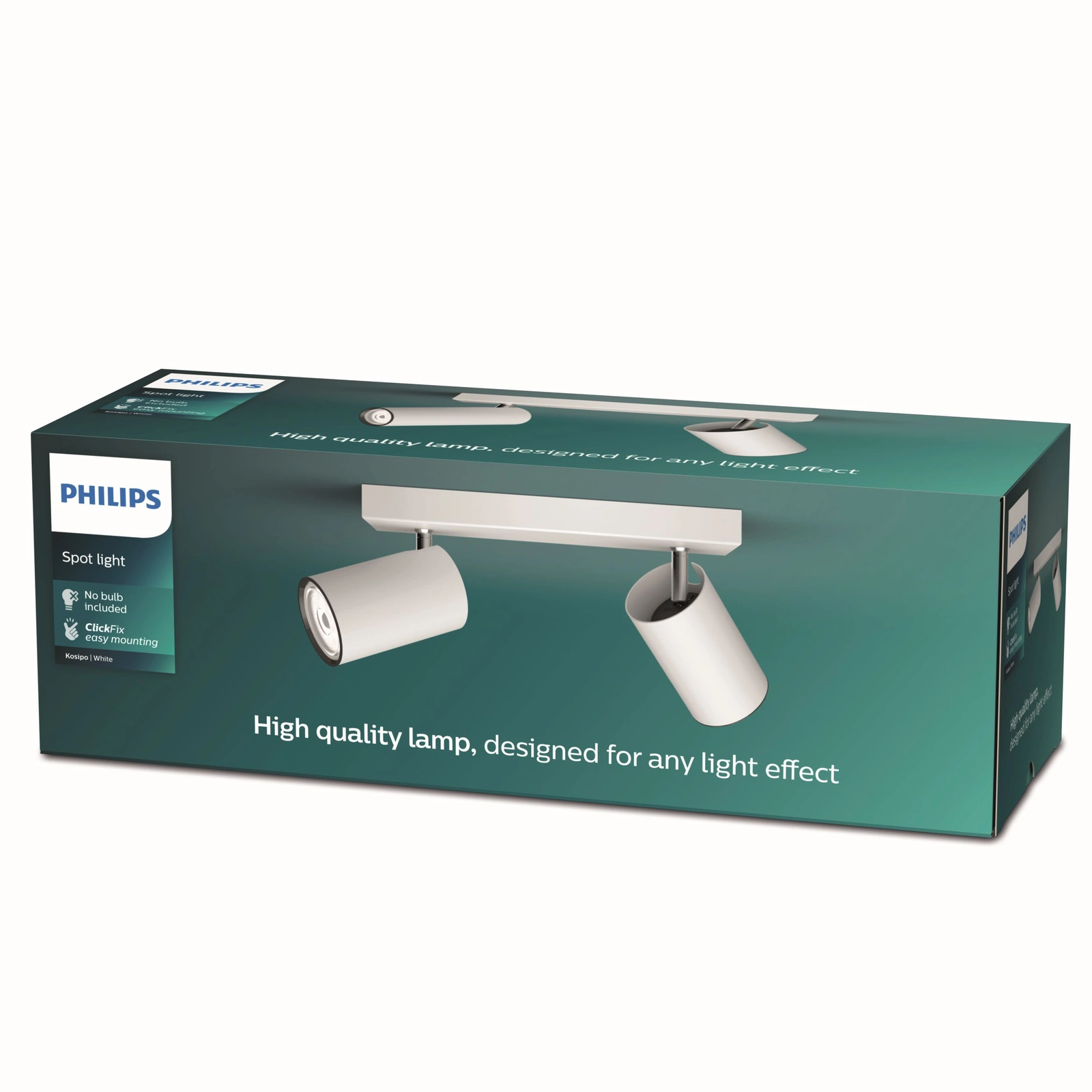 Lampa sufitowa reflektor Kosipo od marki Philips to nowoczesne rozwiązanie oświetleniowe, które idealnie sprawdzi się zarówno w przestrzeniach biurowych, jak i w domowym zaciszu. Wyposażona w dwa źródła światła o gwincie GU10, lampa doskonale rozprasza światło, tworząc przyjemną atmosferę w każdym pomieszczeniu. Wykonana w minimalistycznym, białym wykończeniu, wpisuje się w nowoczesny styl aranżacji wnętrz. Solidna konstrukcja lampy zapewnia jej trwałość i niezawodność przez długi czas. Dzięki zastosowaniu technologii zasilania w zakresie 220-240V przy częstotliwości 50-60Hz, lampa jest kompatybilna z większością instalacji elektrycznych. Prosta w montażu i konserwacji, lampa Kosipo to połączenie funkcjonalności i estetyki, które zadowoli nawet najbardziej wymagających użytkowników.
