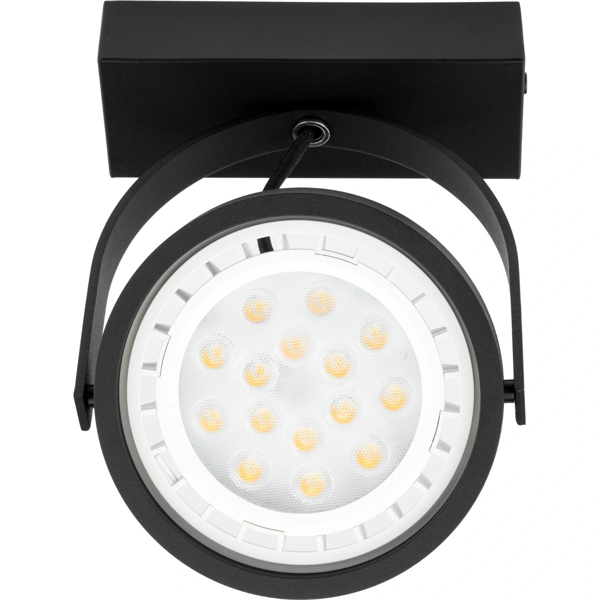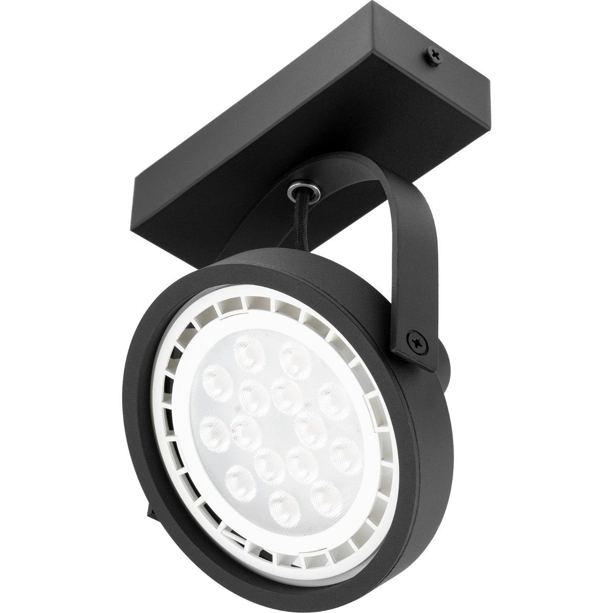 Kinkiet sufitowy koloru czarnego na wymienne źródło światła o trzonku GU10. Lampa wraz z żarówkami ES111 o wąskim kącie świecenia świetnie sprawdzi się do oświetlenia takich miejsc jak gabinet, korytarz, witryna.