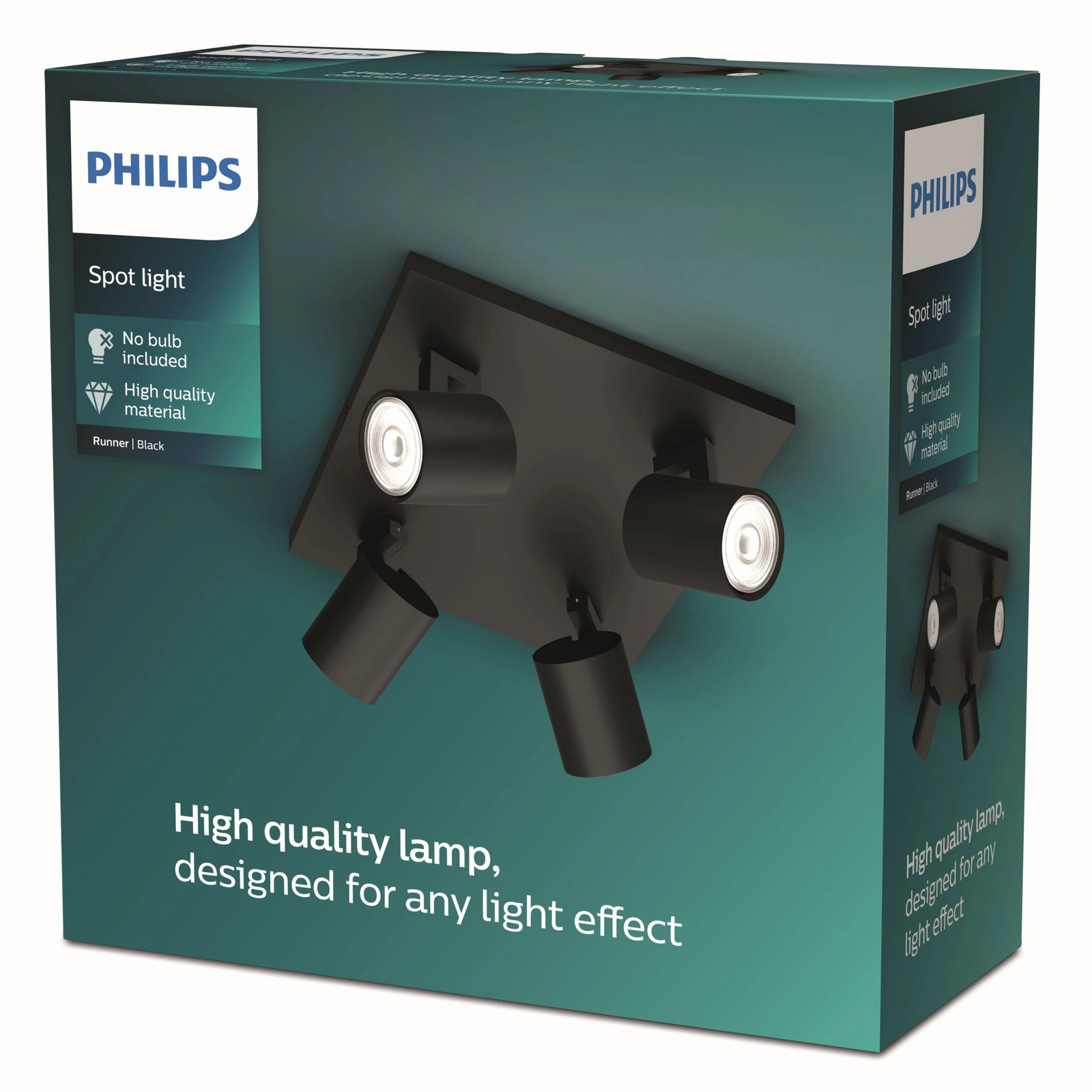 Lampa Sufitowa Reflektor Natynkowy 4x GU10 Czarna Runner Philips