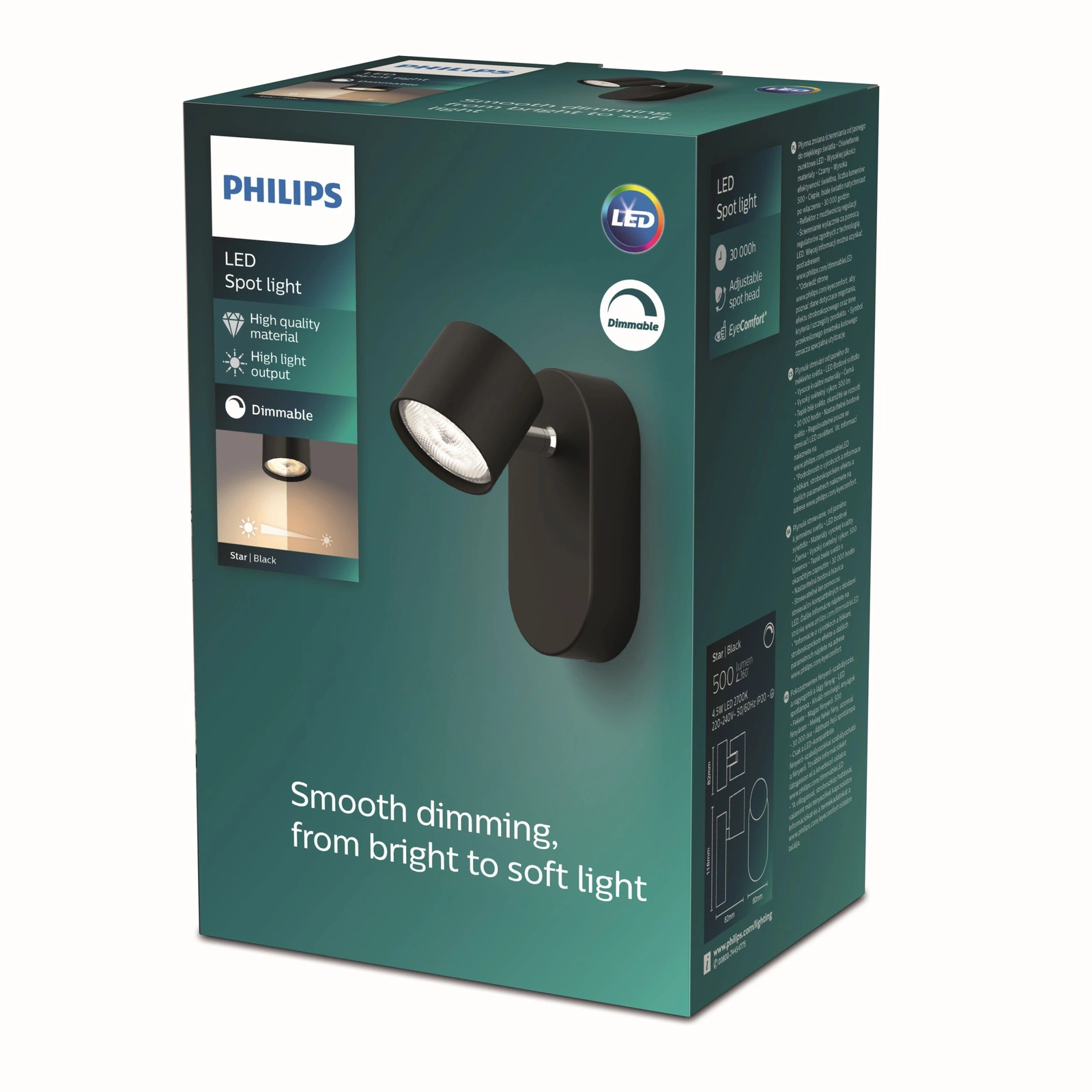 Odkryj nowoczesne oświetlenie z kinkietem LED Star o mocy 4.5W od renomowanej marki Philips. Ten stylowy czarny kinkiet idealnie sprawdzi się w każdym współczesnym wnętrzu, zapewniając przyjemne i ciepłe światło o temperaturze barwowej 2700K i strumieniu świetlnym 500 lm. Kinkiet charakteryzuje się nie tylko eleganckim wyglądem, ale również trwałością – jego żywotność sięga 30 000 godzin. Dzięki wysokiej jakości materiałom i precyzyjnemu wykonaniu, ten nowoczesny element wystroju wnętrz stanie się niezawodnym źródłem światła, którego instalacja i użytkowanie są niezwykle proste. Zasilany standardowym napięciem 220-240V oraz częstotliwością 50-60Hz, gwarantuje energooszczędność i efektywność działania. Idealny do montażu w domowych salonach, sypialniach oraz rozmaitych przestrzeniach publicznych, gdzie liczy się zarówno funkcjonalność, jak i design. Wybierając kinkiet Star od Philips, inwestujesz w jakość, która przetrwa próbę czasu.