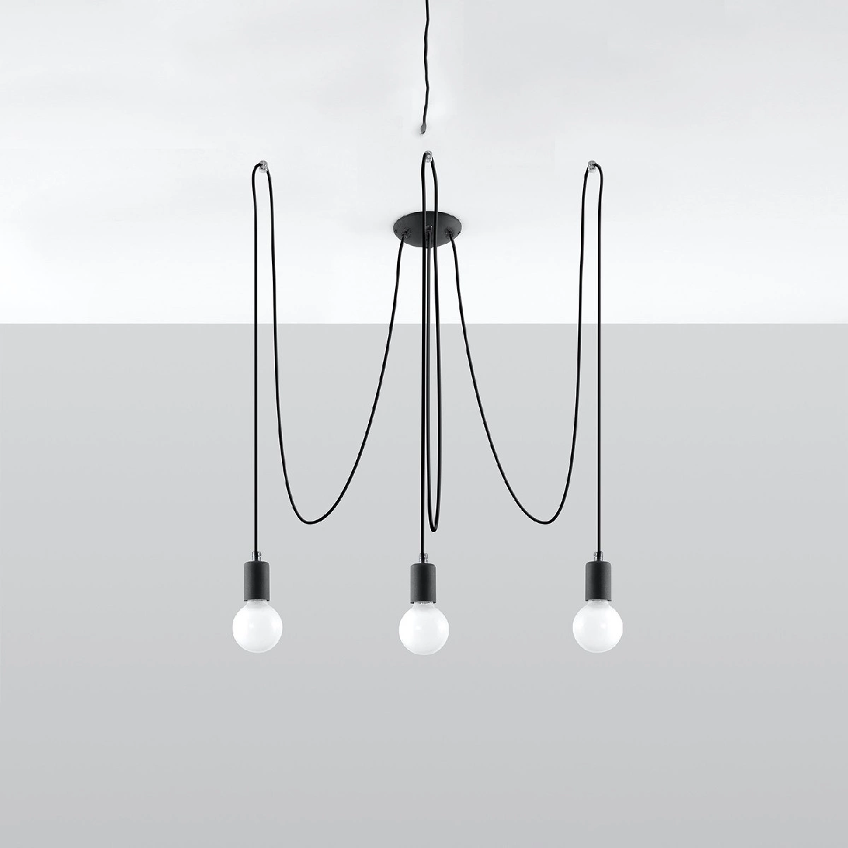 Lampa Sufitowa Wisząca Zwis 3x E27 Nieregularna Czarna Industrialna Edison Sollux