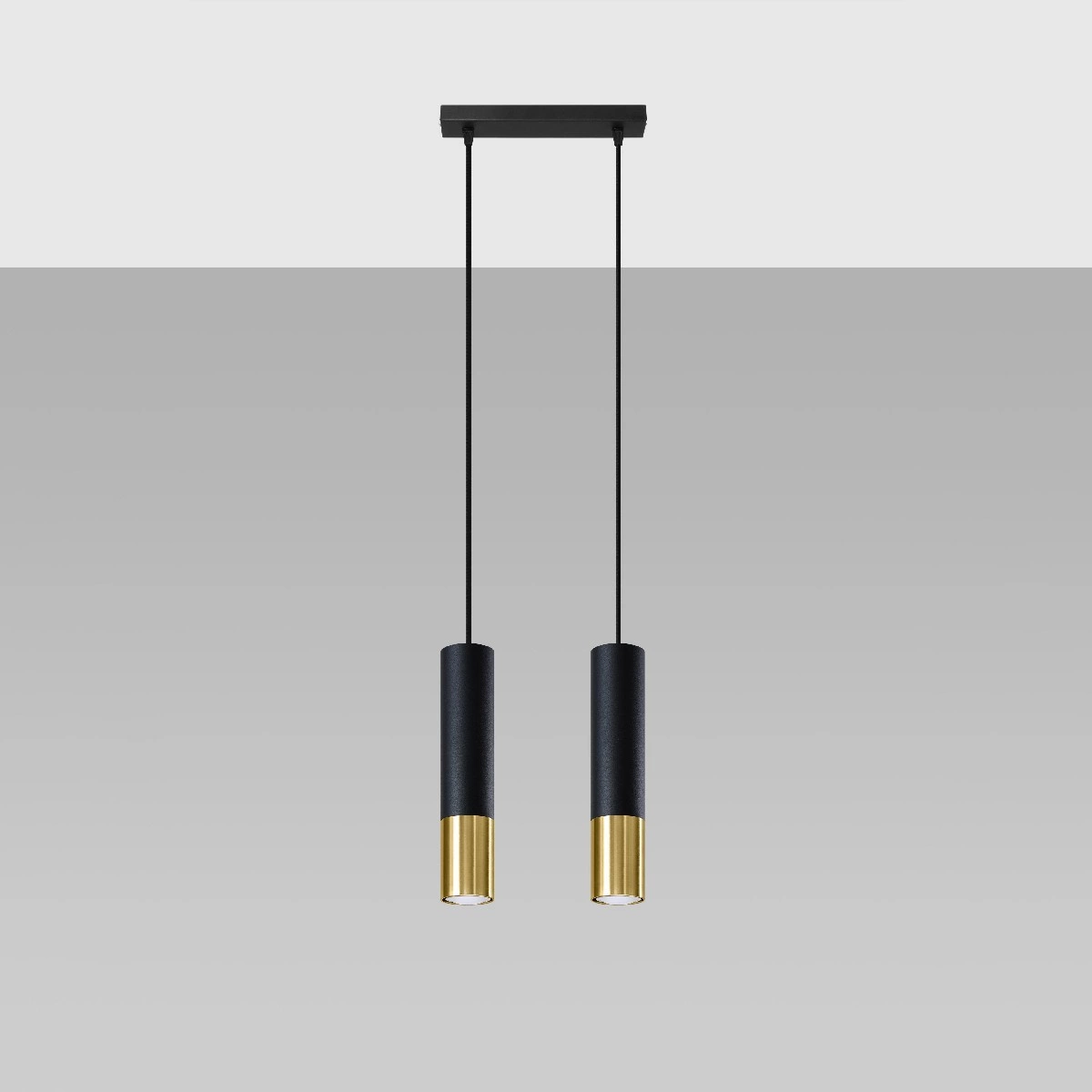 Lampa Sufitowa Oprawa Natynkowa SPOT TUBA 2x GU10 Wisząca Zwis Tubularna Czarna Złota Nowoczesna Loopez Sollux