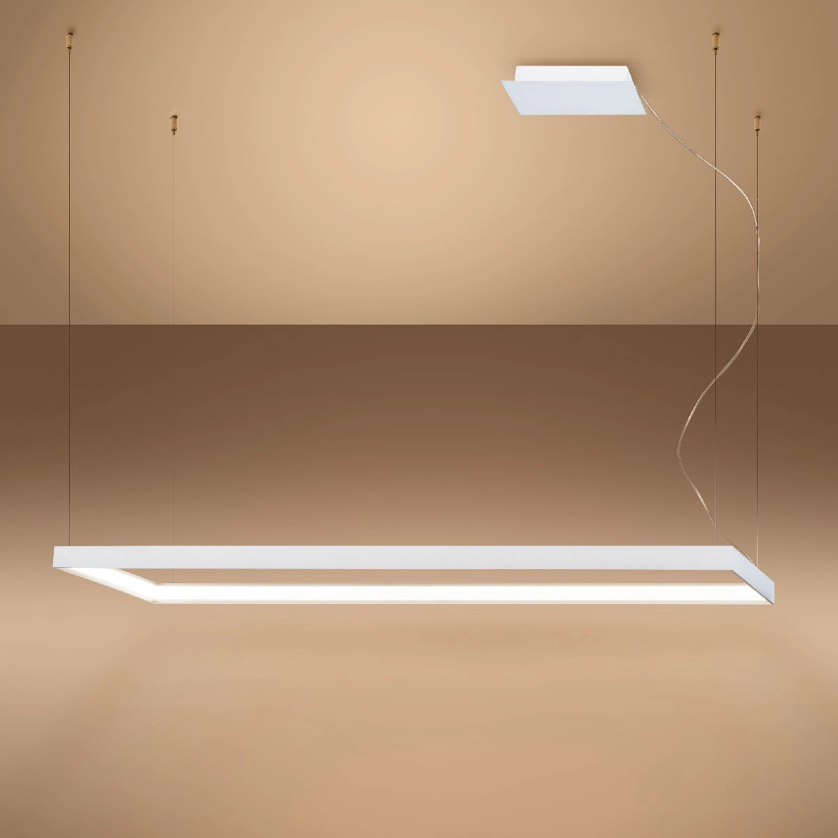 Lampa Sufitowa LED Wisząca TUULA L 50W 3000K Żyrandol Prostokątna 130x40 Biała SOLLUX
