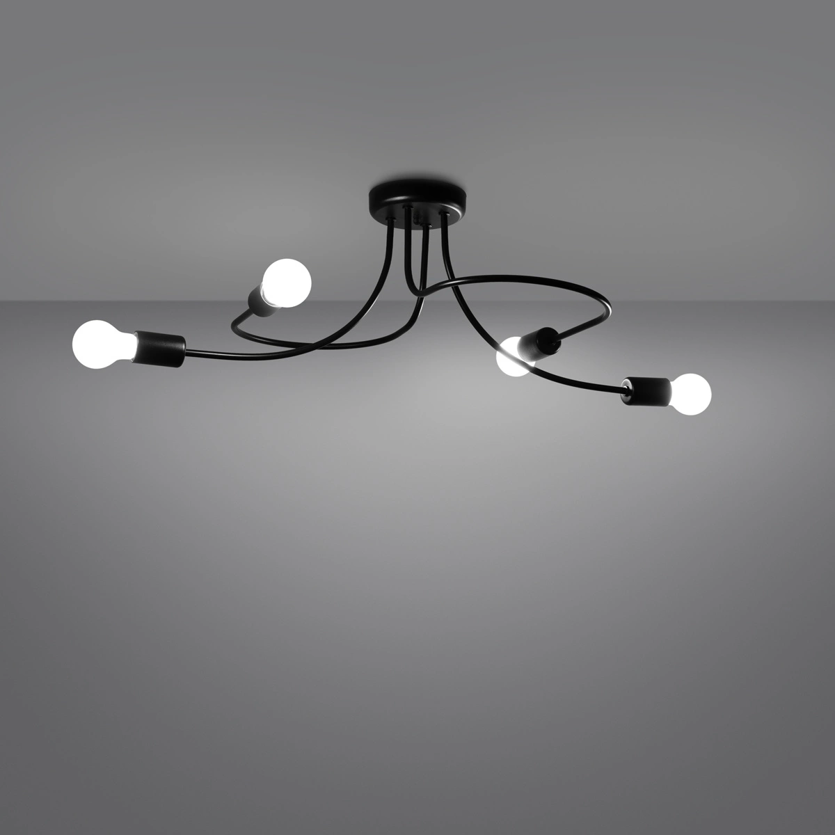 Lampa Sufitowa Oprawa Natynkowa Wisząca Zwis 4x E27 Żyrandol Nieregularna Czarna Industrialna Levar Sollux