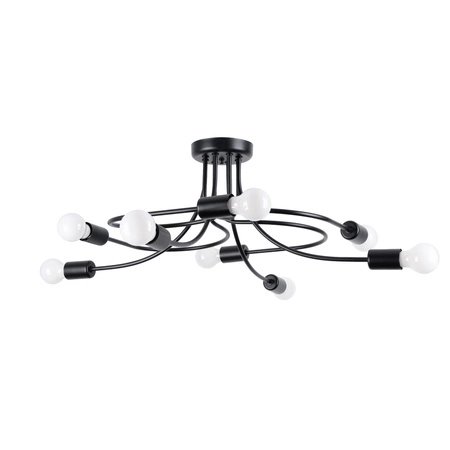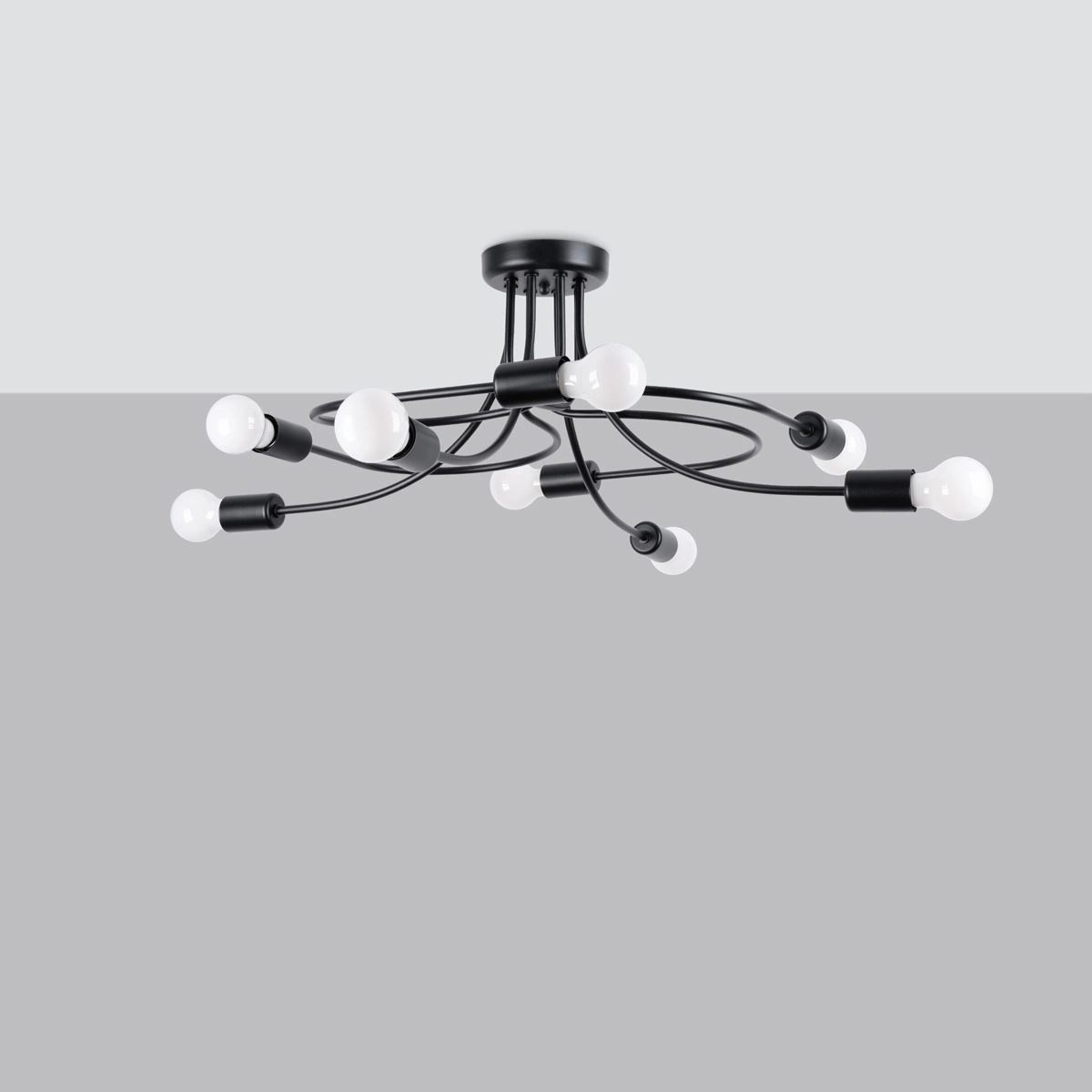 Lampa Sufitowa Oprawa Natynkowa Wisząca Zwis 8x E27 Żyrandol Nieregularna Czarna Industrialna Levar Sollux