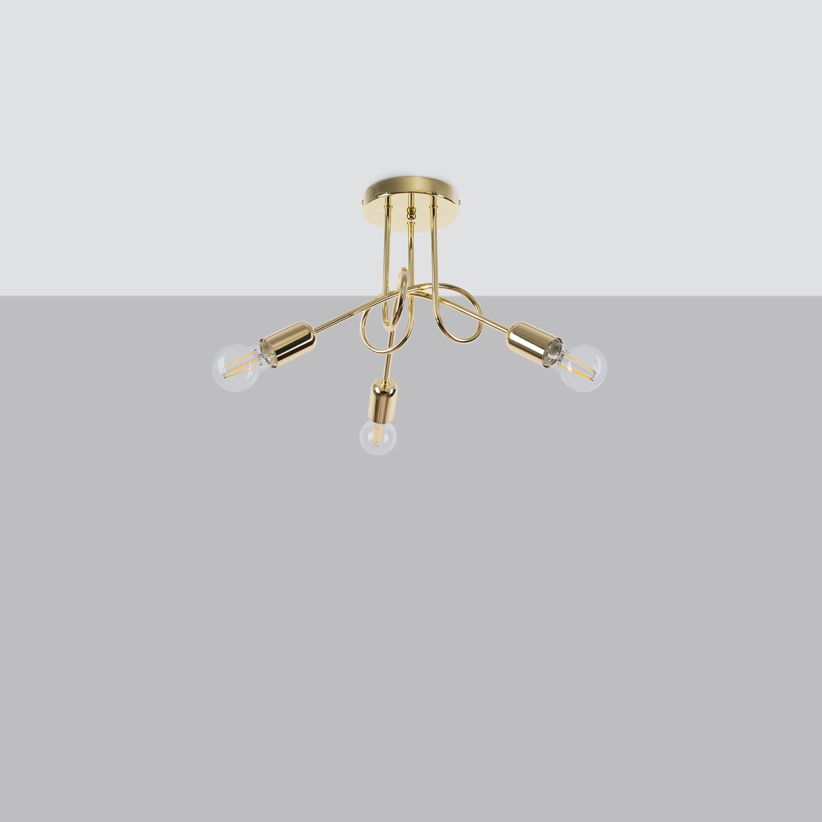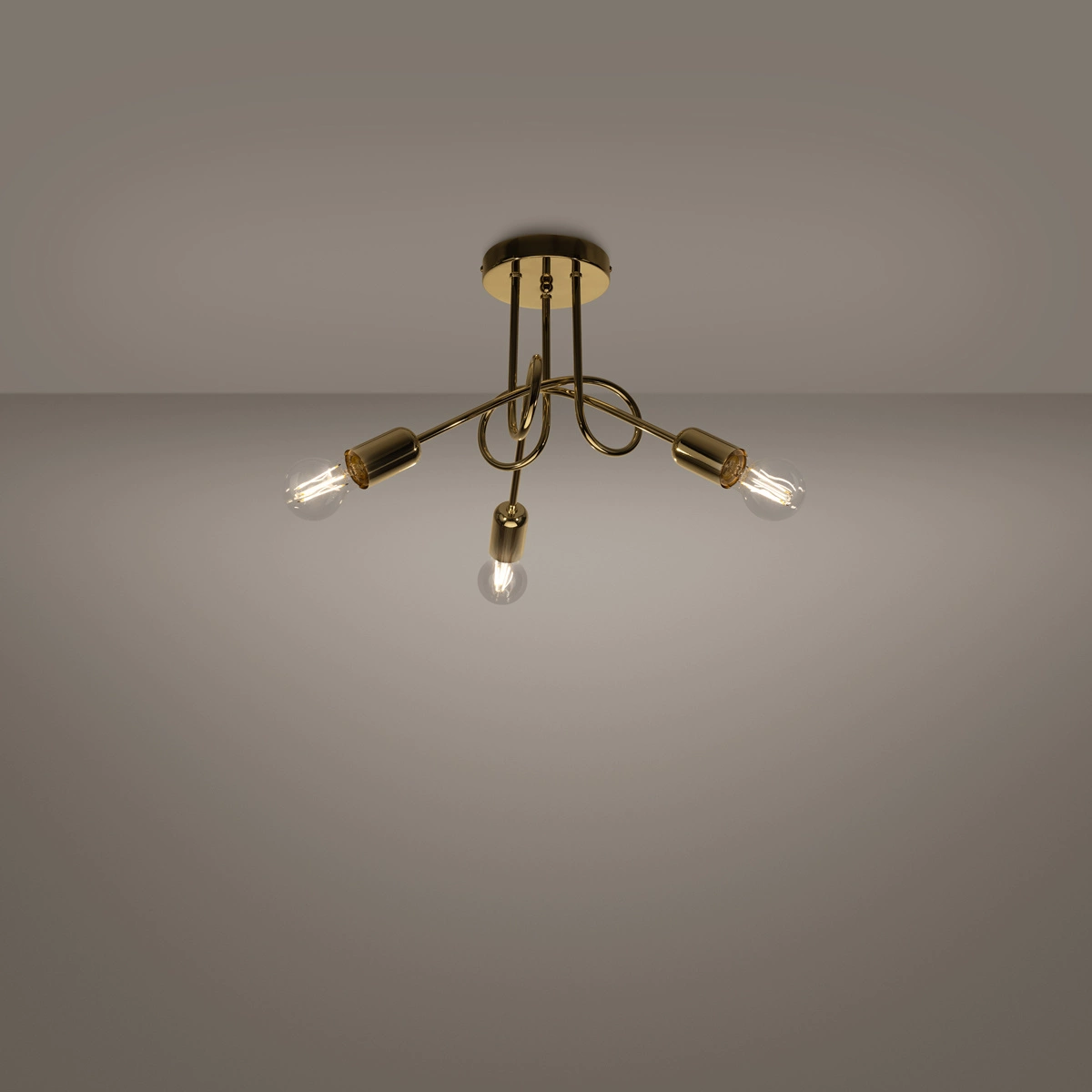 Lampa Sufitowa Oprawa Natynkowa Wisząca Zwis 3x E27 Żyrandol Nieregularna Złota Połysk Industrialna Supeł Sollux