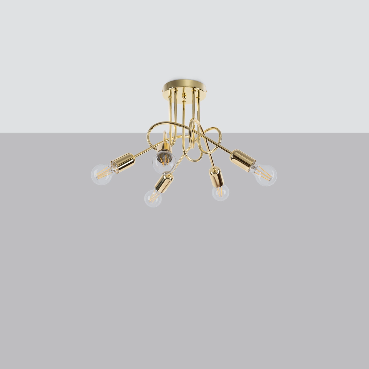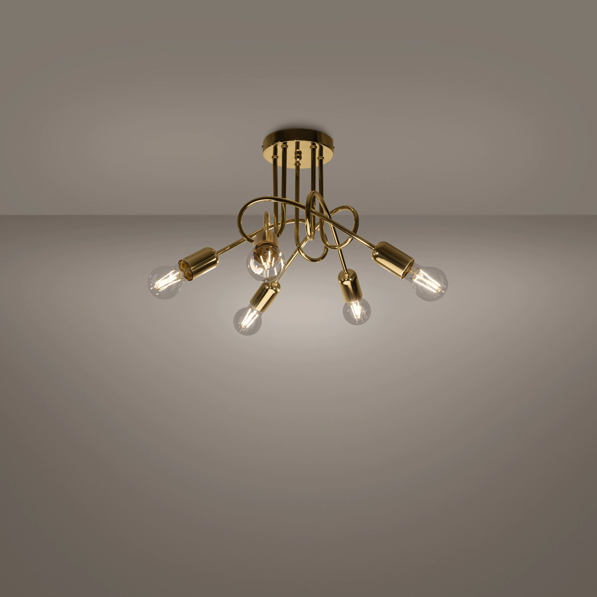 Lampa Sufitowa Oprawa Natynkowa Wisząca Zwis 5x E27 Żyrandol Nieregularna Złota Połysk Industrialna Supeł Sollux