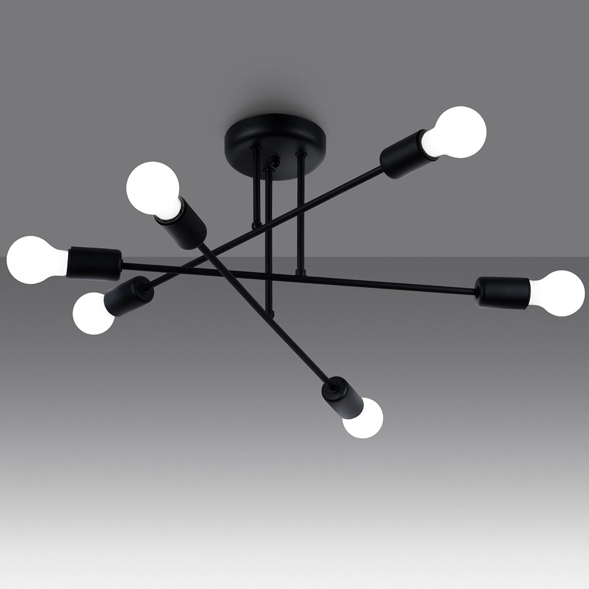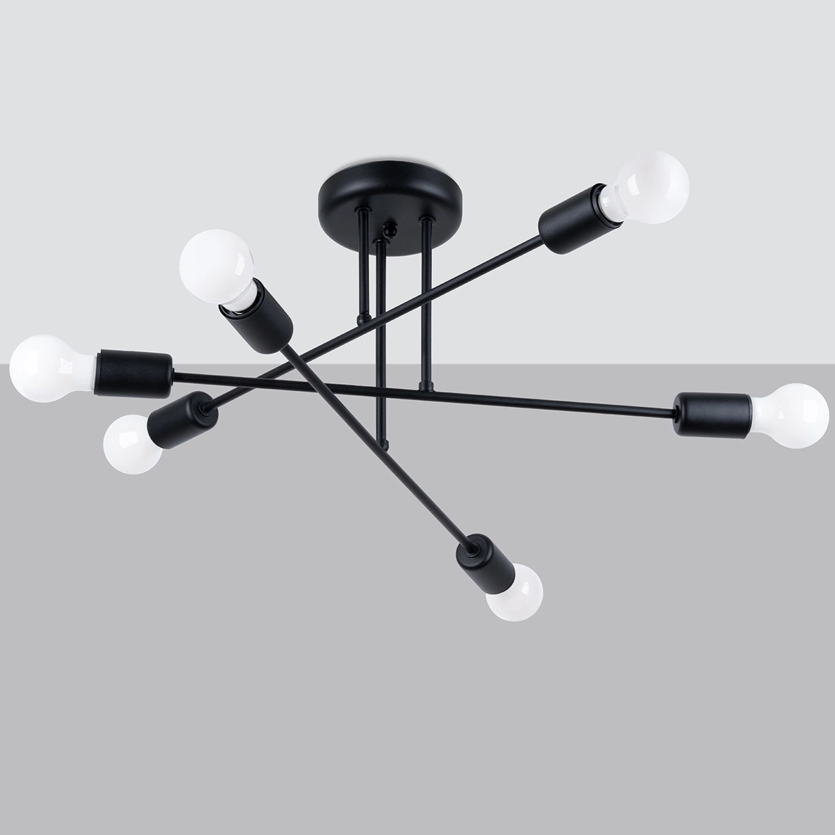 Lampa Sufitowa Oprawa Natynkowa Wisząca Zwis 6x E27 Żyrandol Nieregularna Czarna Nowoczesna Norah Sollux