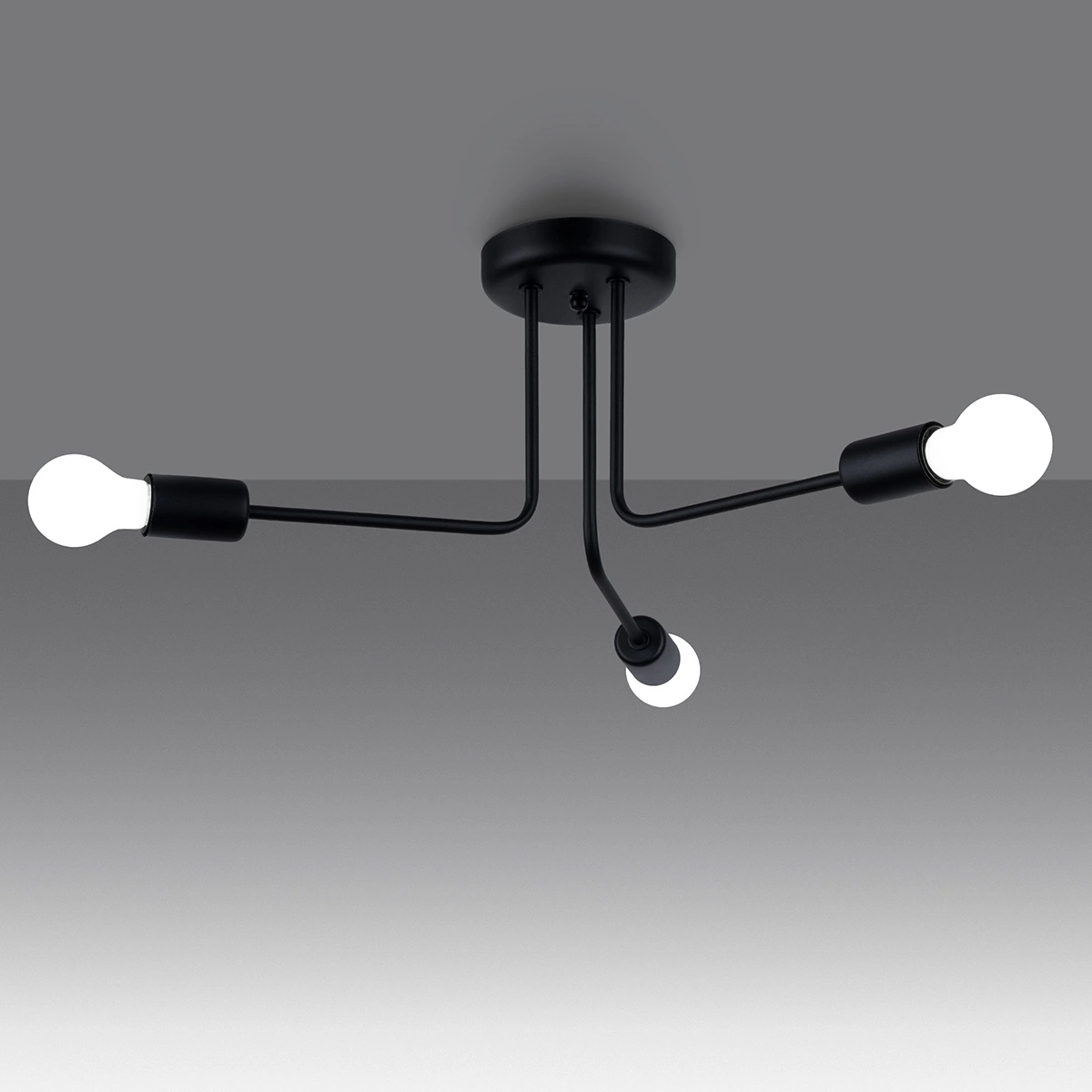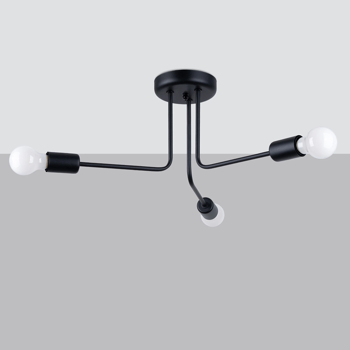 Lampa Sufitowa Oprawa Natynkowa Wisząca Zwis 3x E27 Żyrandol Nieregularna Czarna Nowoczesna Norah Sollux