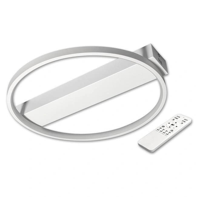 Nowoczesny Żyrandol LED. Wyposażony został w 250 diod SMD 2835 LED, które posiadają opcję ściemniania oraz zmiany barwy ŚWIATŁA. Do regulacji pracy urządzenia służy dedykowany pilot (w zestawie), który pozwala nam na zmniejszanie bądź zwiększanie intensywności ŚWIATŁA lub zmianę jego barwy z ciepłej na neutralna, lub zimną. Pilot działa radiowo co oznacza, że nie musimy celować w konkretny punkt w celu zmiany ustawień.