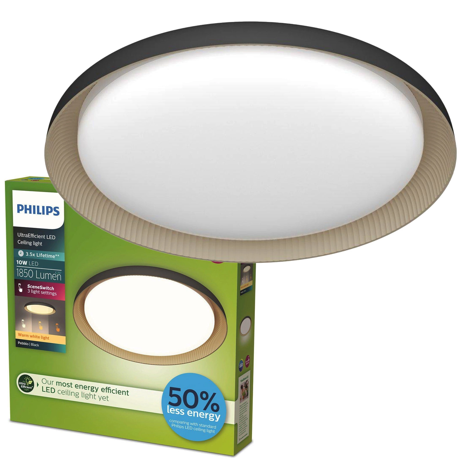 Odkryj nowoczesną i ultra wydajną Lampę Sufitową Plafon LED Pebblo marki Philips, która doda elegancji każdemu pomieszczeniu. Ten czarny plafon o mocy 10W oraz strumieniu świetlnym 1850lm zapewnia idealne oświetlenie i spełnia wymogi stylu nowoczesnego. Dzięki technologii SceneSwitch możesz łatwo dostosować temperaturę barwową do swoich potrzeb, a barwa światła na poziomie 2700K zapewnia ciepłe i przytulne oświetlenie.