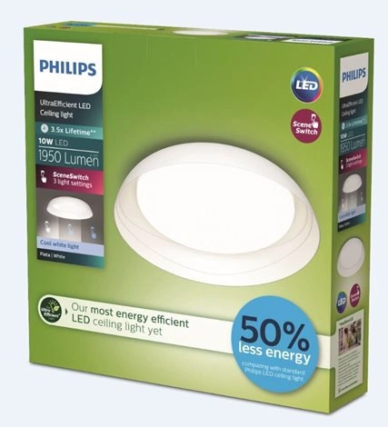 Lampa sufitowa Plafon LED Philips Fleta to wyjątkowe rozwiązanie oświetleniowe, łączące nowoczesny design z zaawansowaną technologią. Dzięki mocy 10W oferuje imponujące 1950 lumenów, co sprawia, że jest doskonałym wyborem do jasnego oświetlenia przestrzeni mieszkalnych czy biurowych. Zastosowana technologia SceneSwitch umożliwia dostosowanie barwy światła do dwóch ustawień, co pozwala na stworzenie odpowiedniej atmosfery w pomieszczeniu - od energooszczędnej pracy po relaks przy cieplejszym świetle. Produkt emituje światło o neutralnej barwie 4000K, idealne do każdej aktywności codziennej. Długowieczność lampy gwarantuje żywotność aż do 50 000 godzin, co przekłada się na długotrwałe użytkowanie bez potrzeby częstej wymiany. Minimalistyczna, biała obudowa plafonu doskonale wkomponuje się w nowoczesny styl wnętrza, dodając mu świeżości i elegancji. Wysoka efektywność energetyczna i estetyczny wygląd czyni tę lampę idealnym wyborem dla osób ceniących funkcjonalność połączoną z designem na najwyższym poziomie.