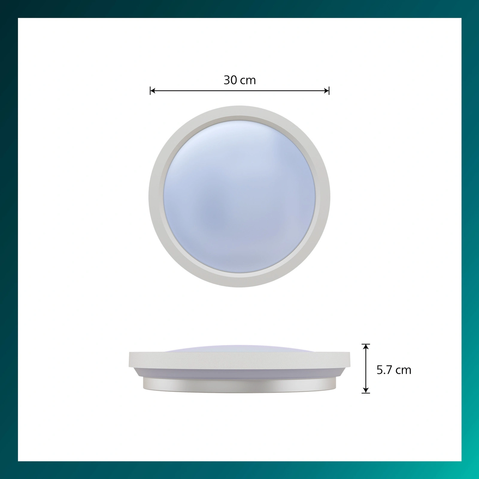 Lampa wykonana jest z trwałych materiałów, łącząc metal i tworzywo sztuczne, co zapewnia jej trwałość na 20 000 godzin. Jej okrągły kształt i biały kolor sprawiają, że doskonale wkomponuje się w każde wnętrze utrzymane w nowoczesnym stylu. Dzięki technologii EyeComfort, zapewnia przyjazne dla oczu światło, idealne nawet do długotrwałego użytku. Model ten charakteryzuje się łatwością montażu i wysoką klasą energooszczędności, co czyni go doskonałym wyborem dla świadomych konsumentów dbających o środowisko.