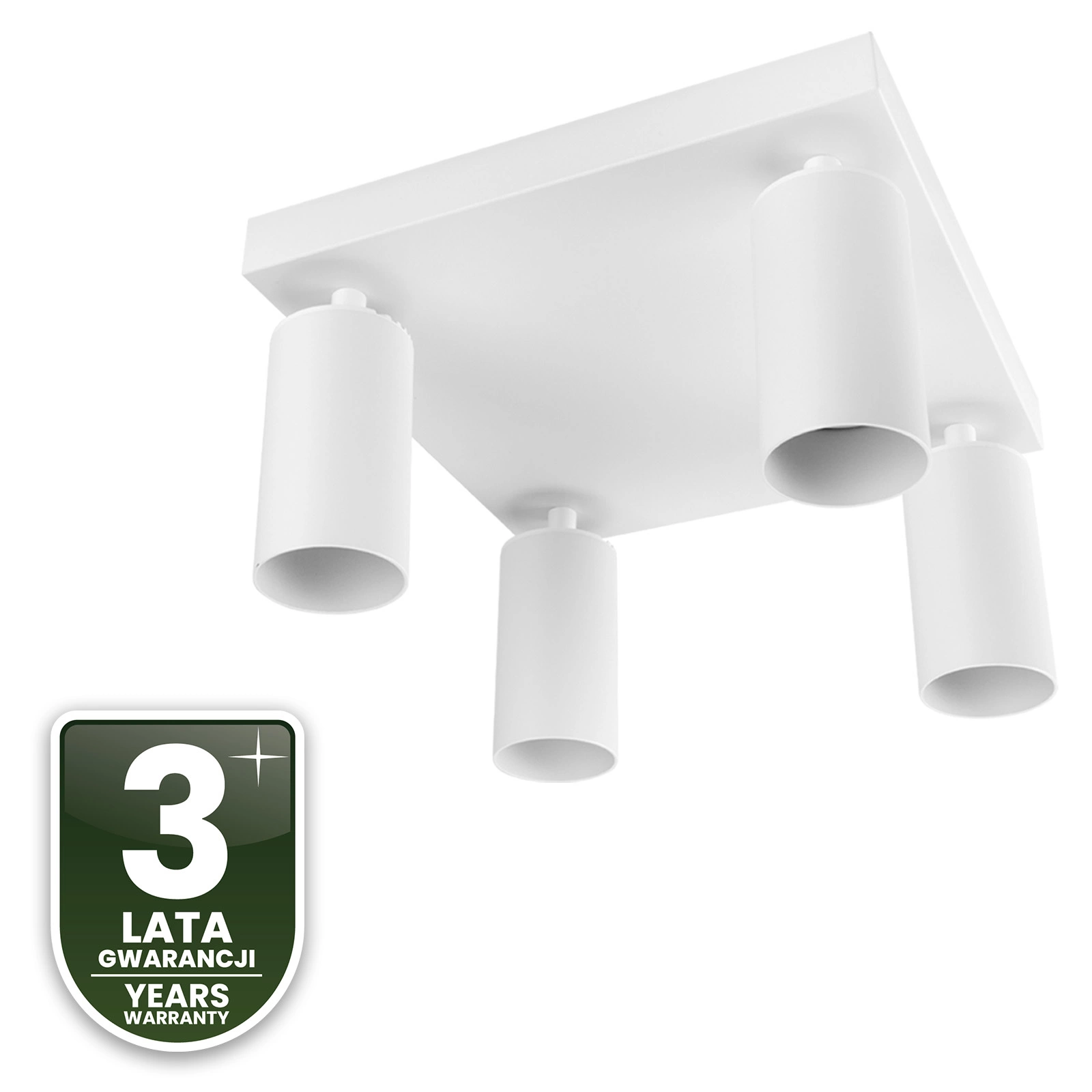 Oprawa została wyposażona w 4 popularne trzonki GU10, które dają swobodę doboru żarówki LED. Możesz wybrać barwę i moc dopasowaną do pomieszczenia – ciepłą do relaksu, neutralną do codziennych zadań czy chłodną do pracy. Lampa obsługuje źródła światła o mocy do 12W, co zapewnia odpowiednią jasność i pełne bezpieczeństwo użytkowania. Wymienne źródło to także oszczędność i ekologia – w każdej chwili wymienisz żarówkę na nowszą i bardziej energooszczędną, bez konieczności zmiany całej lampy.