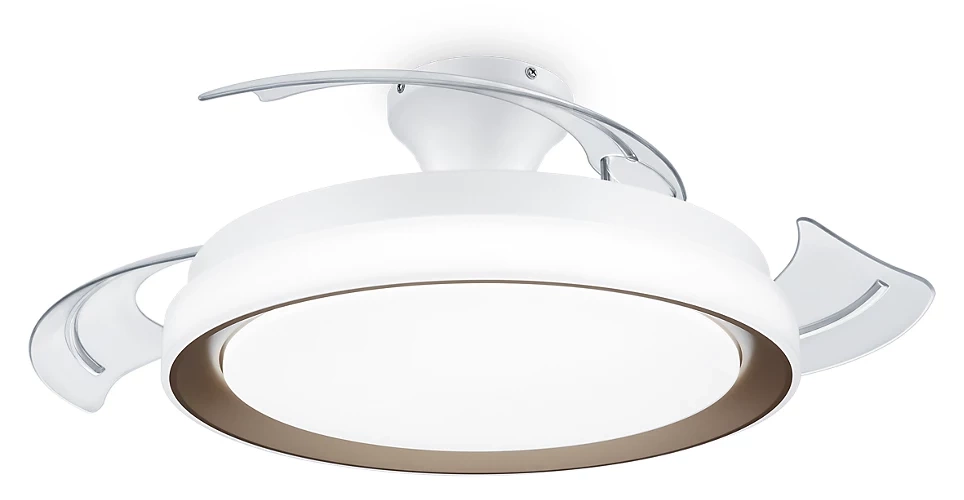 Zapomnij o wirujących cieniach na suficie: ten wentylator ma składane przezroczyste łopatki, które można złożyć, aby nie rzucały się w oczy, gdy nie są używane.