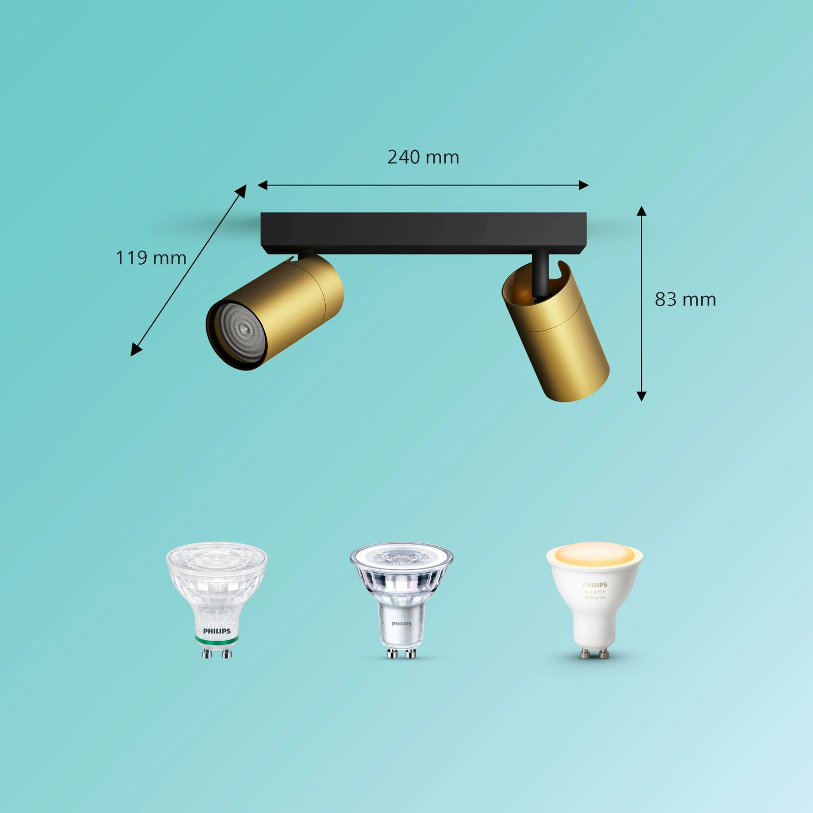 Lampa Sufitowa Reflektor 2x GU10 IP44 Miedziany-Czarny Kosipo Philips