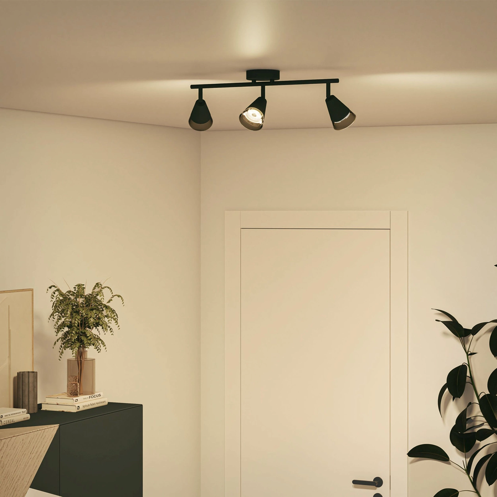 Lampa sufitowa Reflektor 3x GU10 w kolorze czarnym od Philips to nowoczesne i eleganckie rozwiązanie oświetleniowe, które świetnie sprawdzi się w każdym wnętrzu. Wykonana z najwyższą starannością, oferuje efektowne oświetlenie punktowe za pomocą trzech źródeł światła typu GU10, co pozwala na precyzyjne dostosowanie kierunku światła. Klasyczna czarna obudowa wpisuje się w nowoczesny styl, dodając przestrzeni zarówno elegancji, jak i wyrafinowania. Oświetlenie działa w zakresie napięcia 220-240V oraz częstotliwości 50-60 Hz, co czyni je uniwersalnym rozwiązaniem do każdego domu. Model Cleft charakteryzuje się funkcjonalnością i estetyką, co pozwala na łatwą integrację z różnymi aranżacjami wnętrz, minimalizując jednocześnie potrzebę dodatkowych dekoracji. Lampa jest idealnym wyborem dla miłośników nowoczesnego stylu, szukających zarówno jakości, jak i efektywności.