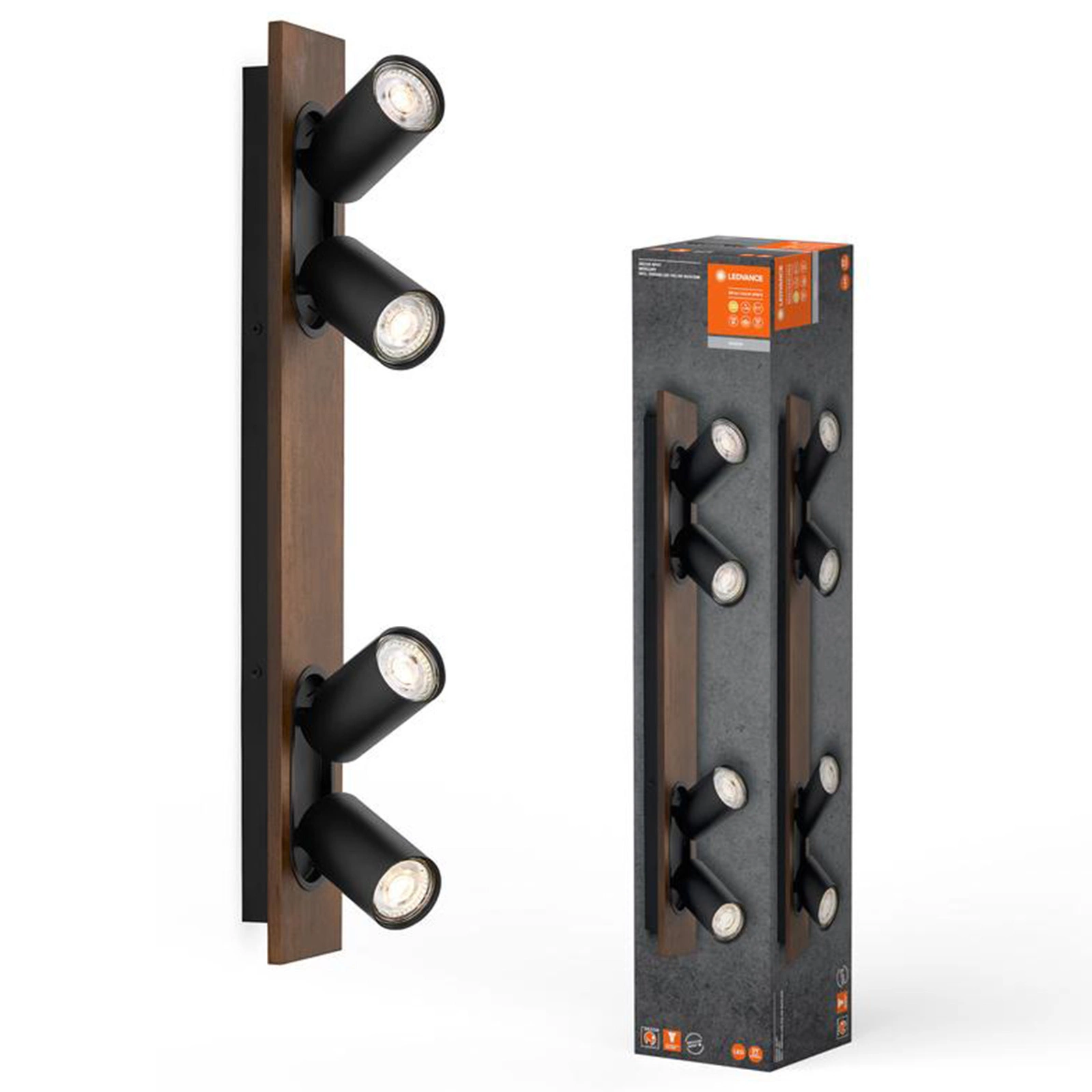 Lampa Sufitowa Ścienna LED Reflektor 4-Punktowy Dekoracyjny Drewno 13.6W GU10 Czarny LEDVANCE