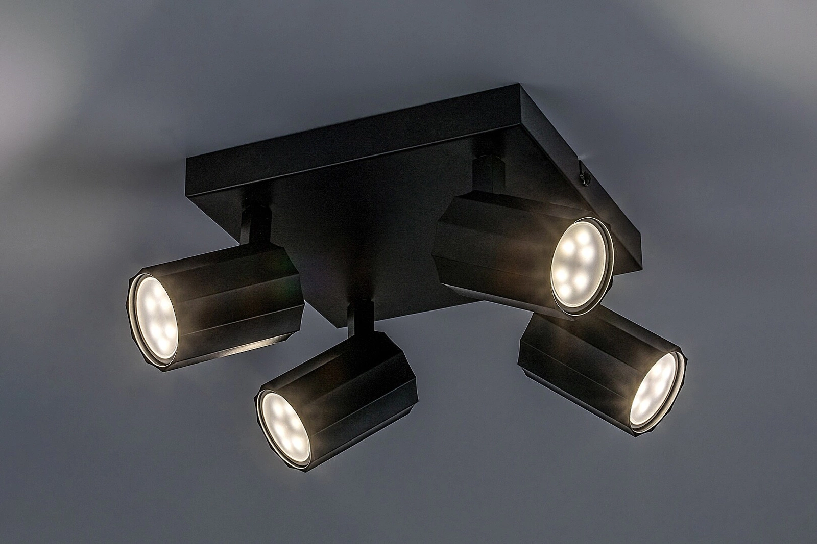 Odkryj nowoczesną elegancję z lampą sufitową SPOT Reflektor 4x GU10 w kolorze czarnym. Wykonana z wysokiej jakości metalu oraz aluminium, idealnie komponuje się w salonie, sypialni czy biurze. Dzięki wymiennemu trzonkowi GU10 i maksymalnej mocy 40 W na każdą z 4 punktów świetlnych, lampa dostosowuje się do indywidualnych potrzeb oświetleniowych.