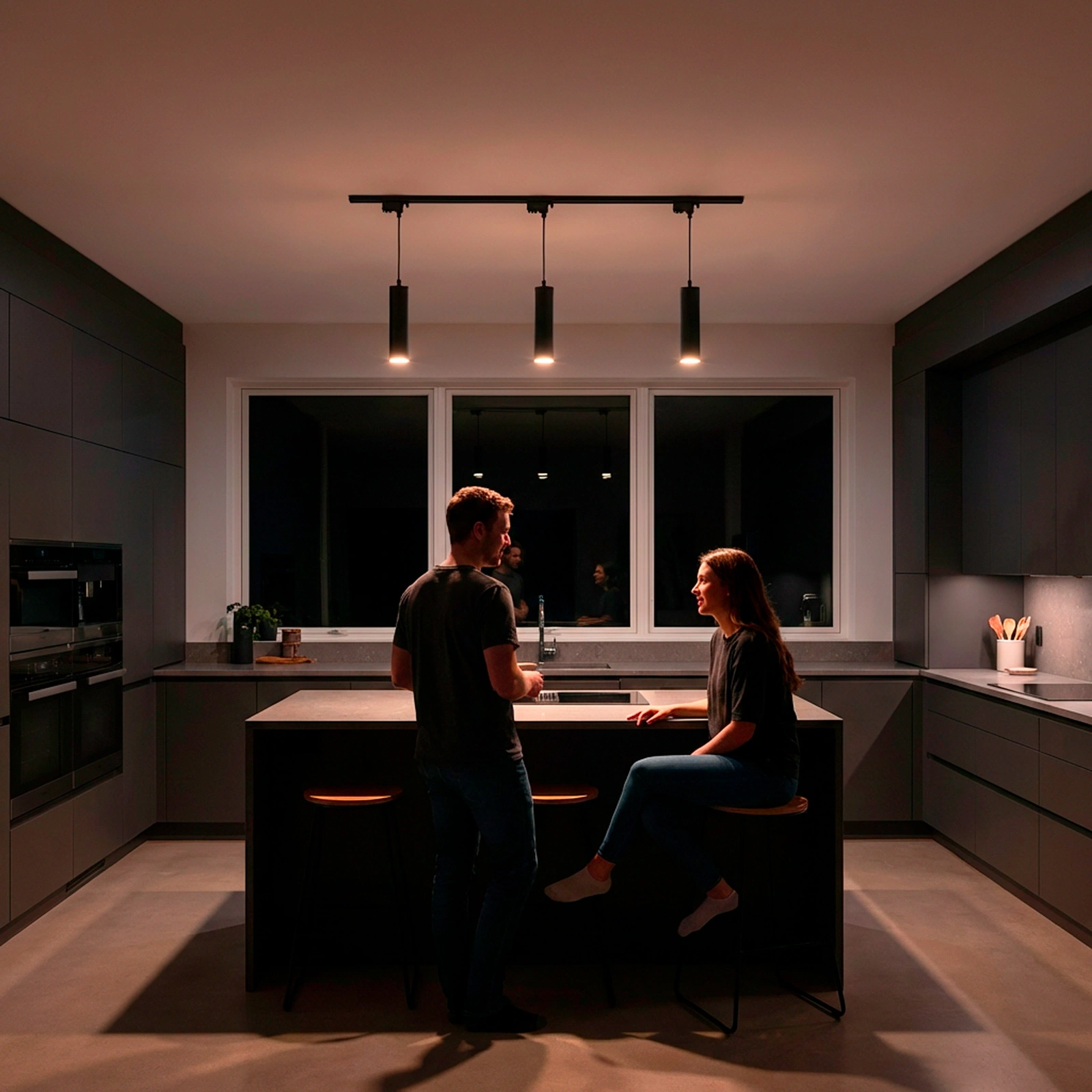 - Minimalistyczna forma w czarnym, matowym wykończeniu sprawia, że oprawa naturalnie wpisuje się w aranżację i nie dominuje wizualnie we wnętrzu.