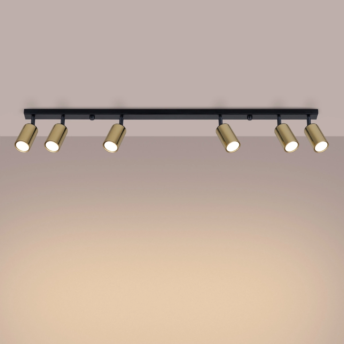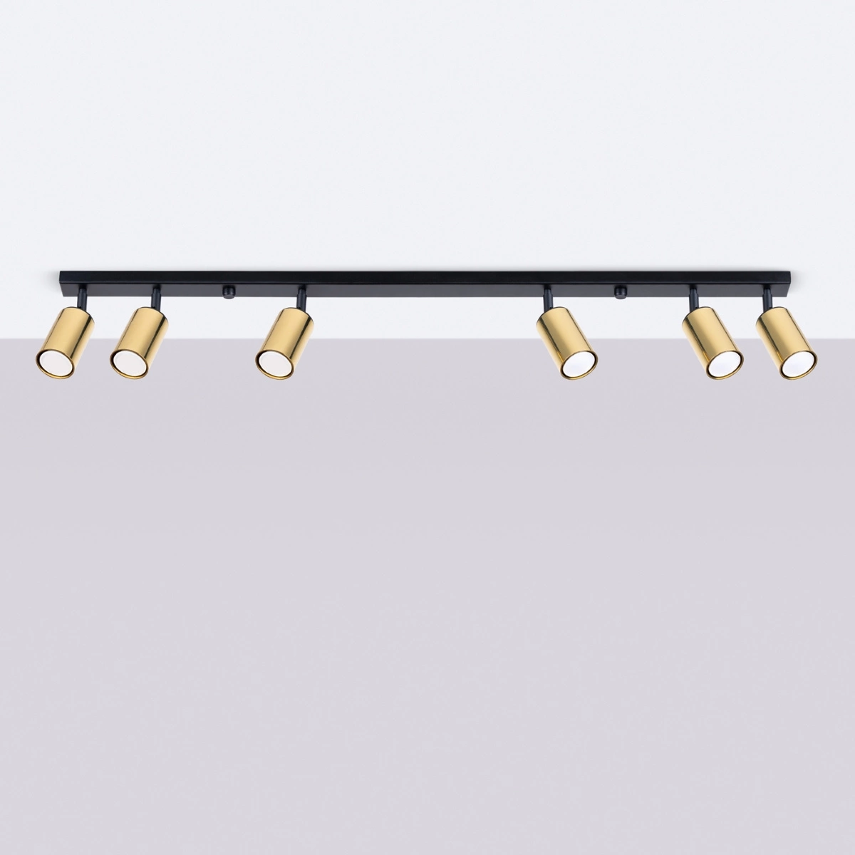 Lampa Sufitowa Oprawa Natynkowa SPOT TUBA Reflektor 6x GU10 Tubularna Czarna Złota Nowoczesna Winx Sollux