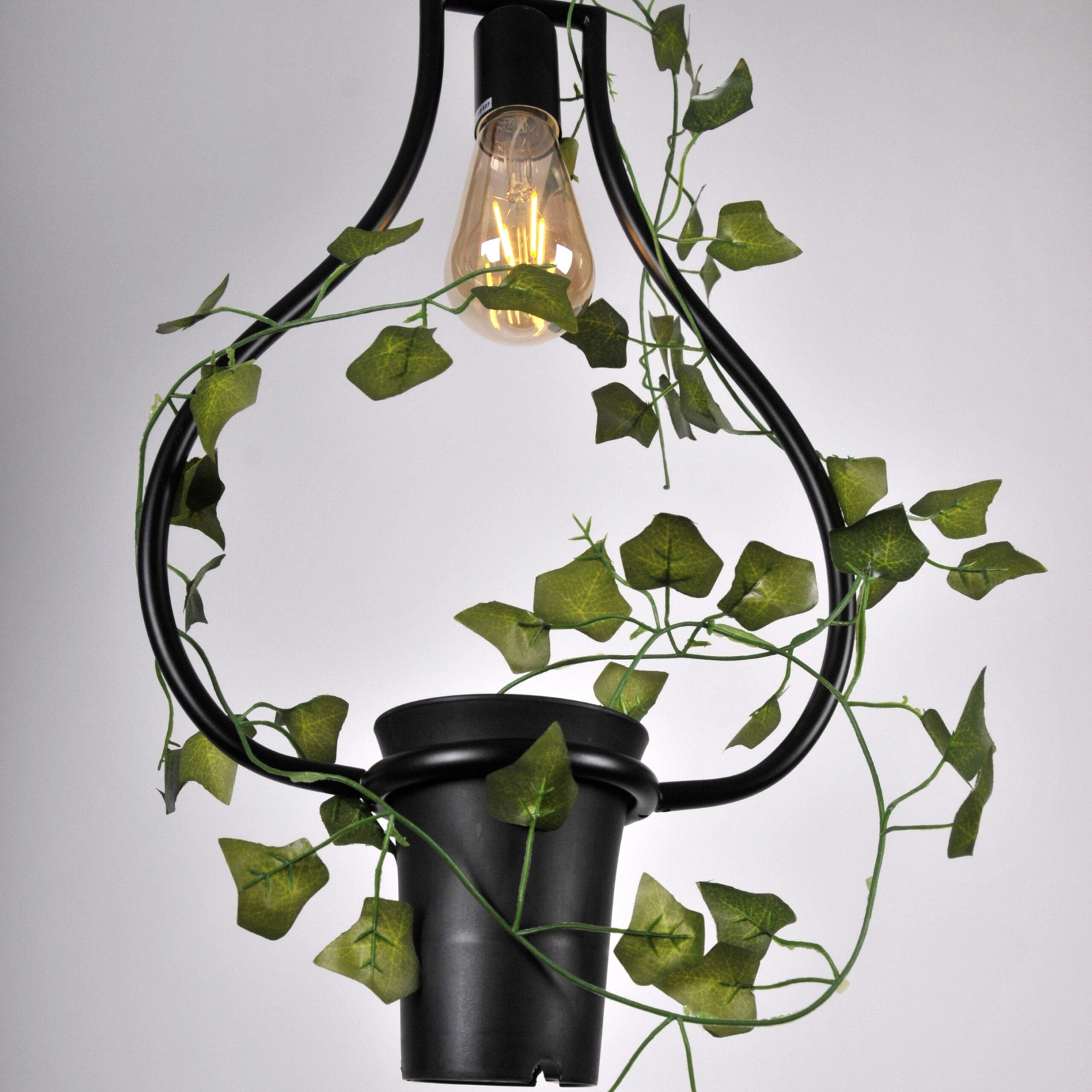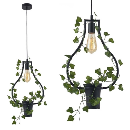 Lampa wisząca, sufitowa z ozdobną donicą i sztucznymi roślinami wspaniale prezentuje się w salonie, jadalni, czy nad kuchenną wyspą. Wykonana została z najwyższą dbałością o detale, co w połączeniu z roślinami oplatającymi jej oprawę sprawia, że wygląda niezwykle atrakcyjnie. Sztuczne rośliny sprawdzą się w miejscach, gdzie w dzień jest mało światła. Tam, gdzie to możliwe można je zastąpić naturalnymi. Czarny, uniwersalny kolor lampy wiszącej sprawia, że wspaniale komponuje się w mieszkaniach w stylu industrialnym, loftowym i nowoczesnym, szczególnie jeśli pojawiają się w nim inne dodatki w kolorze czarnym. Żyrandol idealnie nadaje się do mieszkania, jak również do hotelu czy restauracji, ze względu na swój charakterystyczny wygląd wprowadzi niepowtarzalną atmosferę. Lampa została zaprojektowana zgodnie z nowoczesnymi trendami. Dzięki temu, że nie posiada klosza, wspaniale wygląda w połączeniu z dekoracyjnymi żarówkami typy FILAMENT, które także dostępne są na naszej stronie.