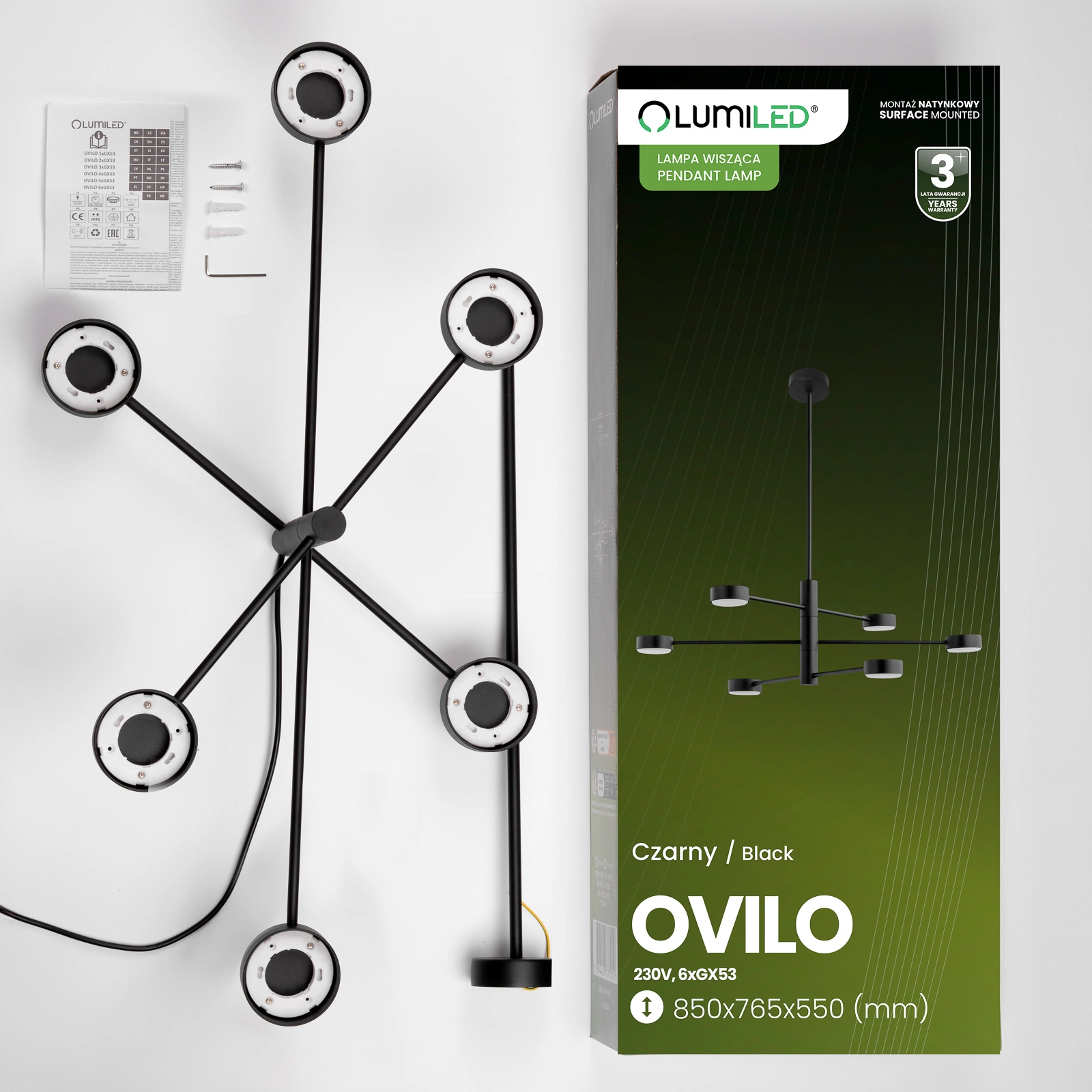 Lampa Sufitowa Wisząca LED 6x GX53 Żyrandol Reflektor Czarna OVILO LUMILED