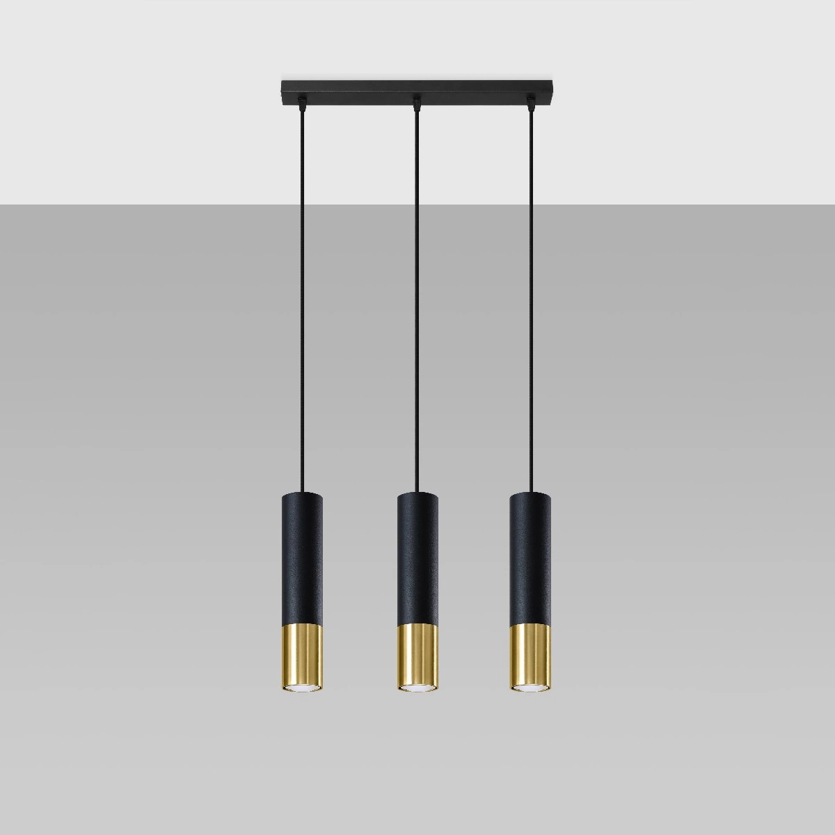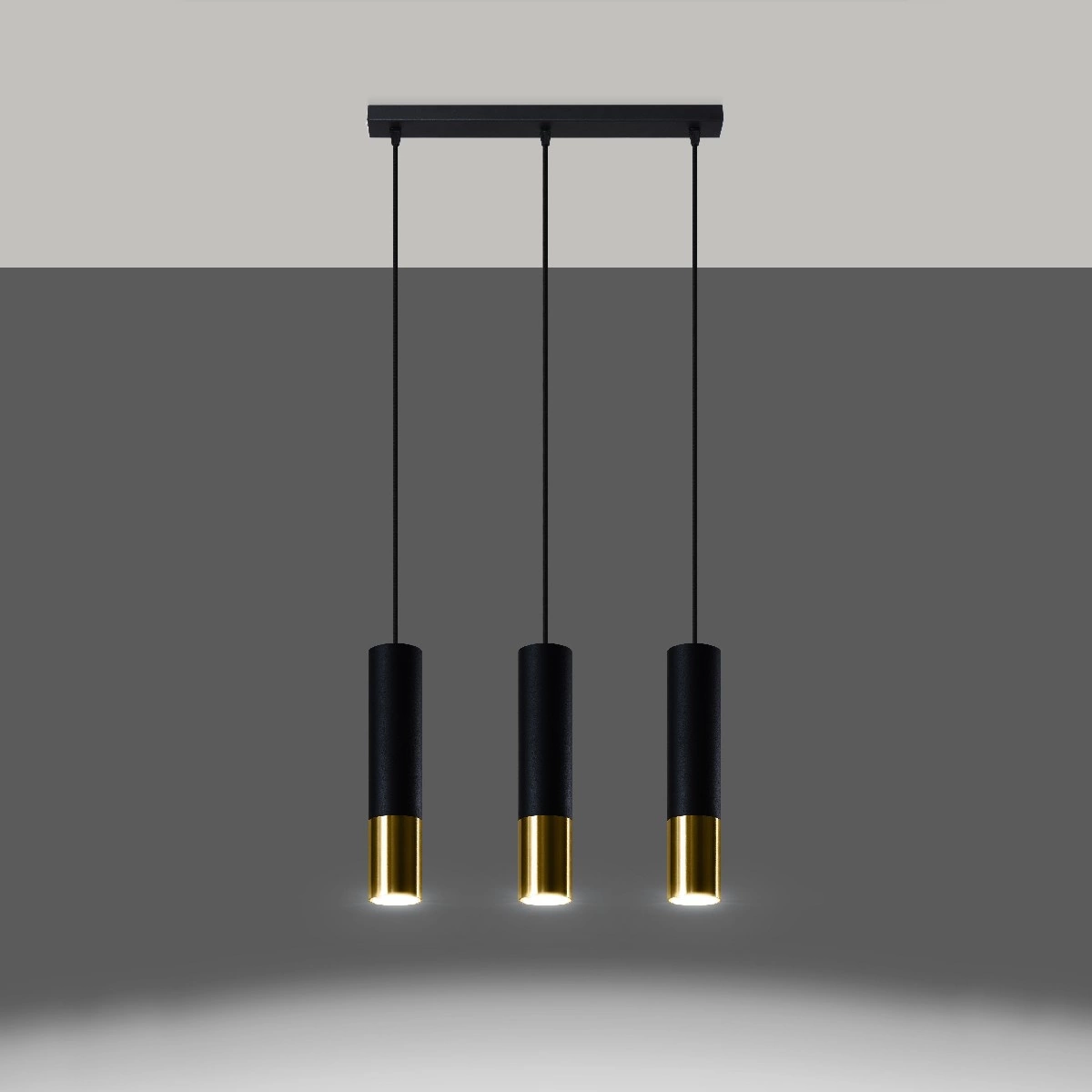 Lampa Sufitowa Oprawa Natynkowa SPOT TUBA 3x GU10 Wisząca Zwis Tubularna Czarna Złota Nowoczesna Loopez Sollux