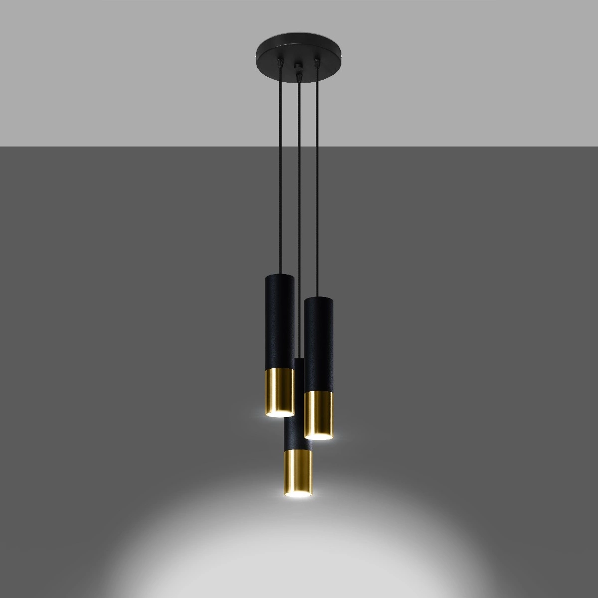 Lampa Sufitowa Oprawa Natynkowa SPOT TUBA 3x GU10 Wisząca Zwis Tubularna Czarna Złota Nowoczesna Loopez Sollux