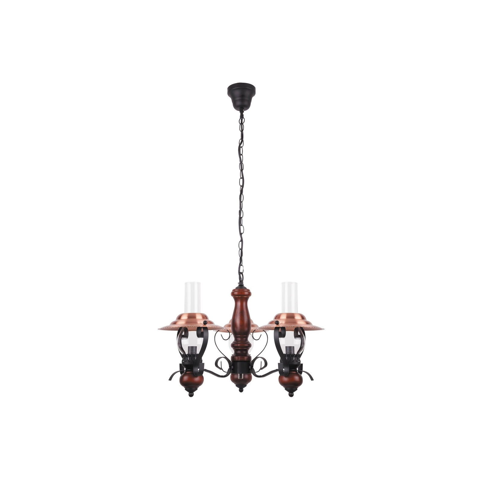 Żyrandol wyposażony jest w trzy miejsca na żarówki typu 3x E14, co pozwala na doskonałe oświetlenie nawet dużych przestrzeni. Dzięki kolorowi czarnemu, lampa stanowi uniwersalny dodatek, który zgra się z różnorodną aranżacją wnętrz. Produkt wykonany jest z wysokiej jakości materiałów, które gwarantują długotrwałe użytkowanie. Zastosowanie rozwiązań energooszczędnych w oprawie oświetleniowej sprawia, że jest ona nie tylko stylowa, ale i przyjazna dla środowiska.