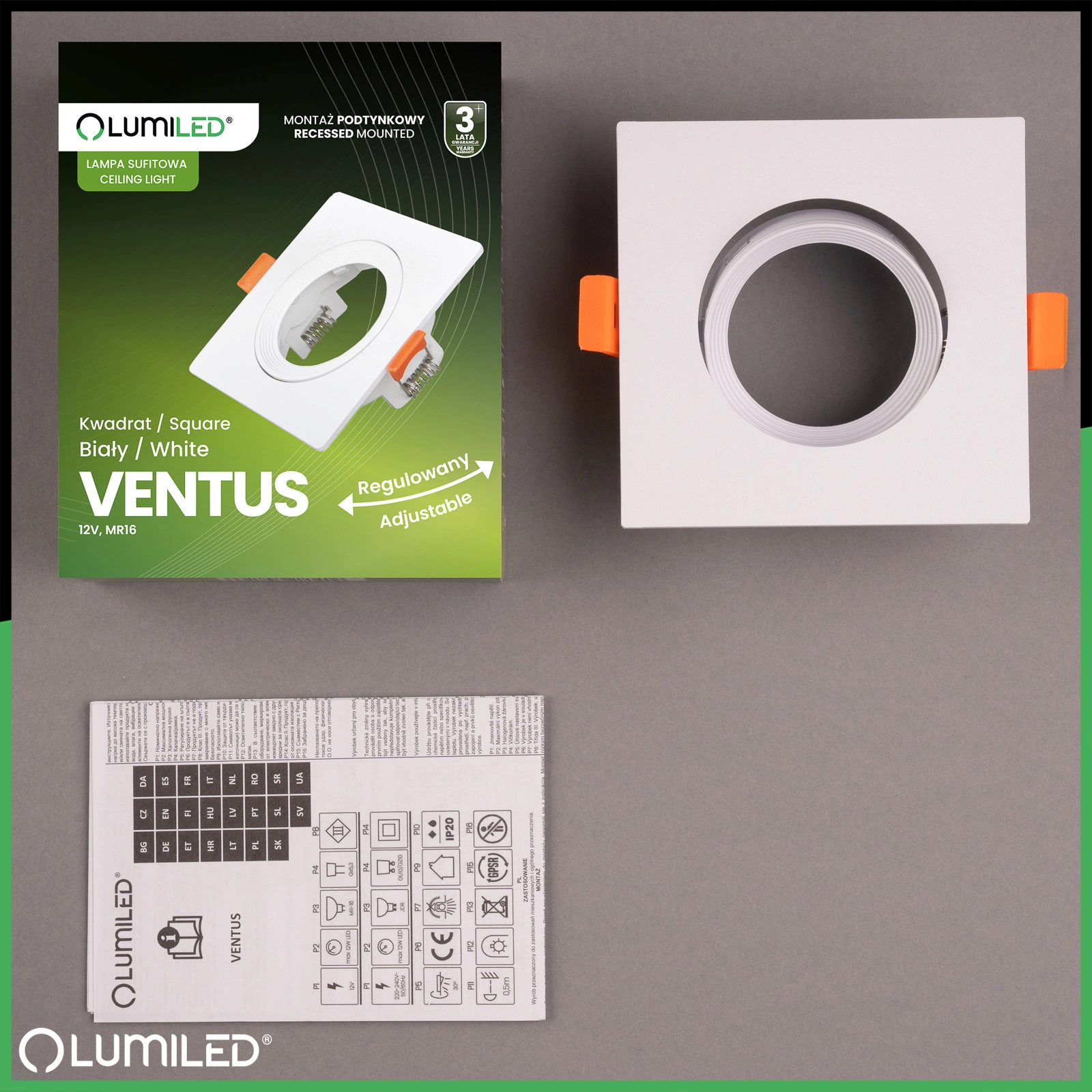 Oprawa Halogenowa Podtynkowa Ruchoma Kwadratowa Biała GU10 MR16 VENTUS Lumiled