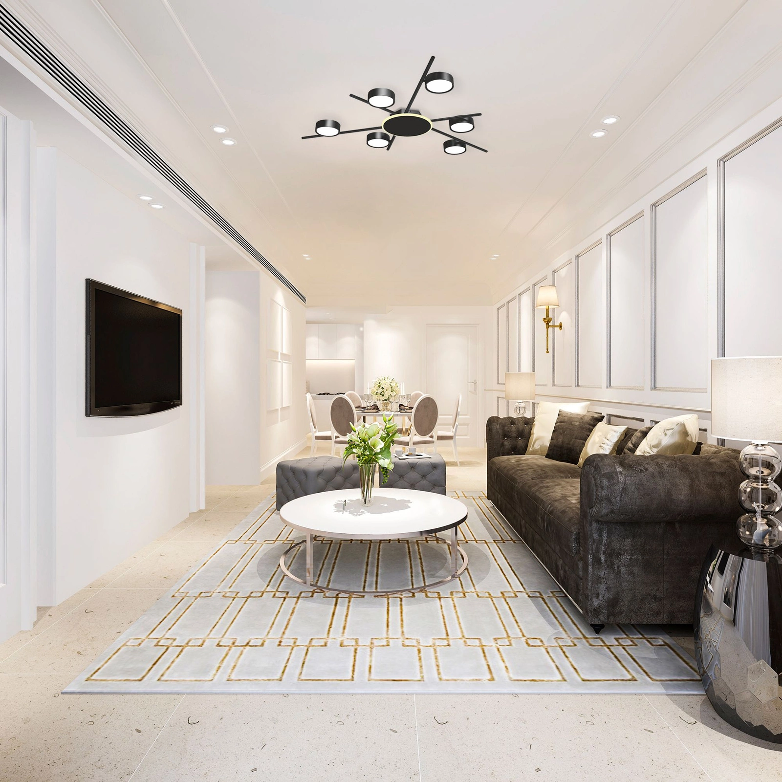 - Nowoczesny design: Stylowa lampa sufitowa w eleganckim czarnym kolorze, idealnie pasująca do każdego nowoczesnego wnętrza.