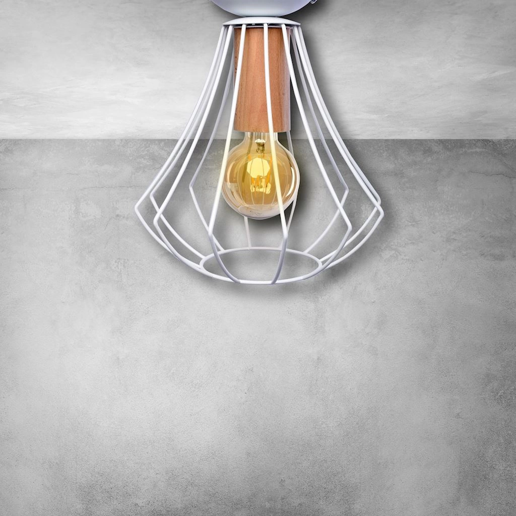 Lampa sufitowa żyrandol WILL 1x E27 LOFT Biała Metal + drewno Milagro