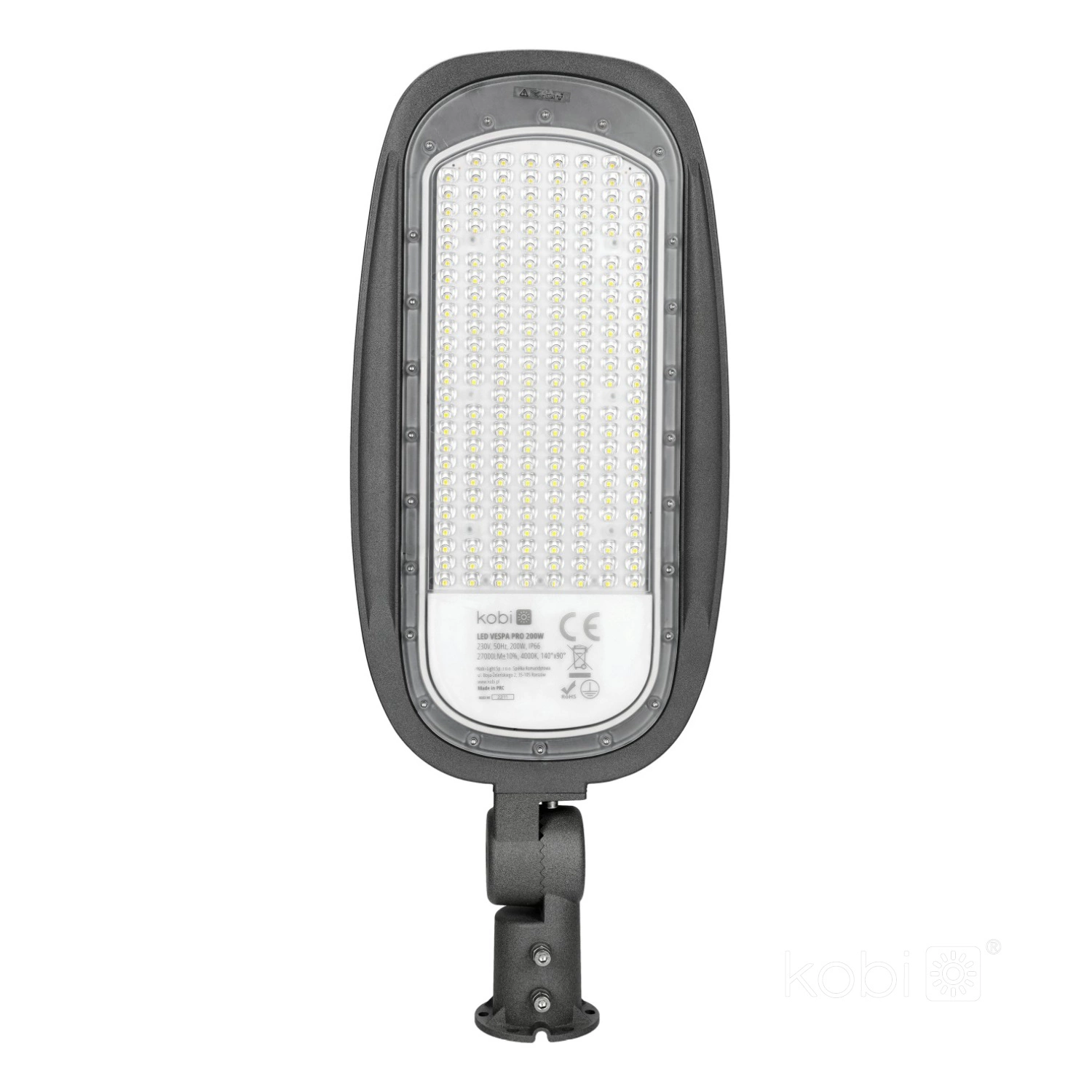 Lampa Uliczna LED Przemysłowa Oprawa Drogowa 200W 27000lm 4000K Neutralna IP66 IK08 Szara Vespa Kobi