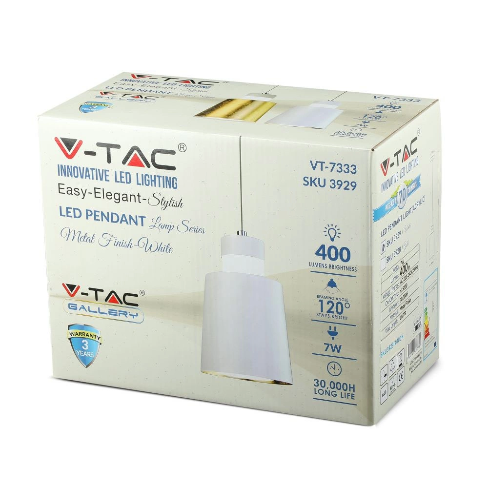 Lampa Wisząca 7W 4000K Z wbudowanym LED Biała PENDANT LIGHTS VT-7333 V-TAC