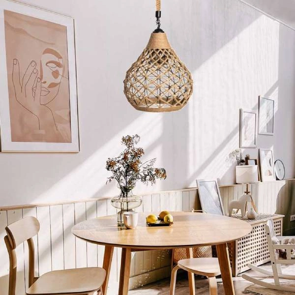 Lampa Wisząca BOHO Pleciona Jutowa SZNUR do LED E27 Długa