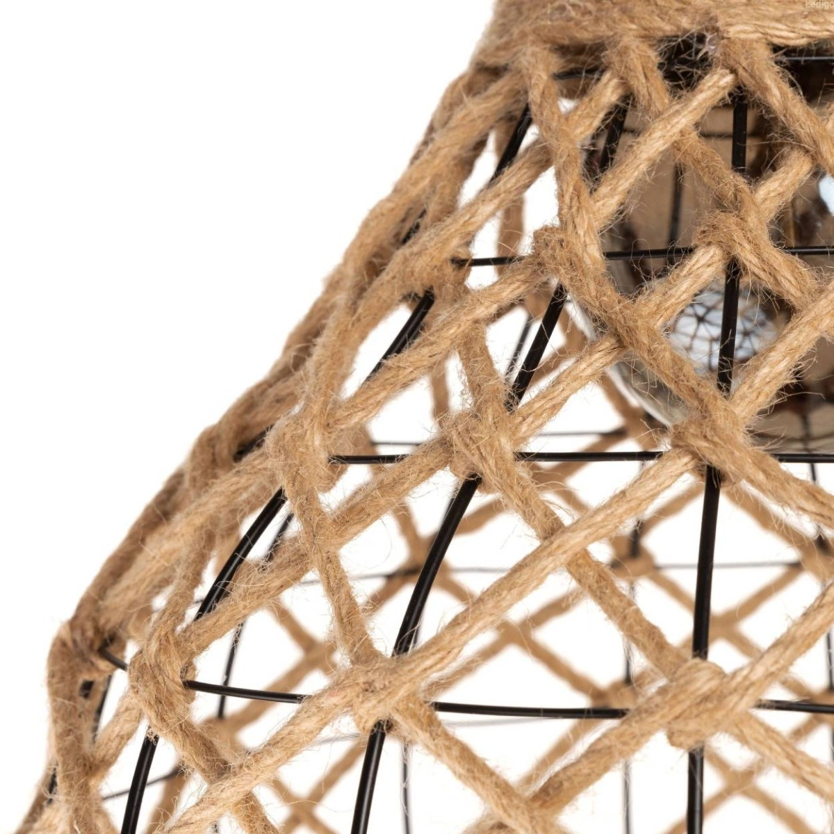 Lampa boho w stylu eko nawiązuje do natury. Jej ażurowa forma sprawia, że przenikające światło tworzy piękną poświatę. Jutowy sznur w połączeniu z czarnymi detalami będzie pięknie prezentował się we wnętrzach, gdzie dominuję szarość, ceramika i drewno. Metalowy klosz, zapewnia stabilną formę dla plecionki z juty, która stanowi niebanalną, a zarazem prostą kompozycję. Lampa w stylu BOHO z jednym punktem świetlnym, zawieszona w centralnym miejscu będzie cieszącą oczy ozdobą, nadaje się także do przestrzeni komercyjnych, takich jak bar czy klimatyczna restauracja, jak również będzie doskonałym dodatkiem do nowoczesnych, bądź minimalistycznych wnętrz, doda im uroku i sprawi, że odmienią one swoje oblicze.