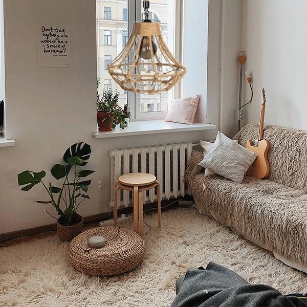 Lampa boho w stylu eko nawiązuje do natury. Jej ażurowa forma sprawia, że przenikające światło tworzy piękną poświatę. Jutowy sznur w połączeniu z czarnymi detalami będzie pięknie prezentował się we wnętrzach, gdzie dominuję szarość, ceramika i drewno. Metalowy klosz, zapewnia stabilną formę dla plecionki z juty, która stanowi niebanalną kompozycję. Lampa w stylu BOHO z jednym punktem świetlnym, zawieszona w centralnym miejscu będzie cieszącą oczy ozdobą, nadaje się także do przestrzeni komercyjnych, takich jak bar czy klimatyczna restauracja, jak również będzie doskonałym dodatkiem do nowoczesnych, bądź minimalistycznych wnętrz, doda im uroku i sprawi, że odmienią one swoje oblicze. Lampa świetnie będzie się prezentować z ozdobną żarówką typu filament lub w wersji "przydymionej".